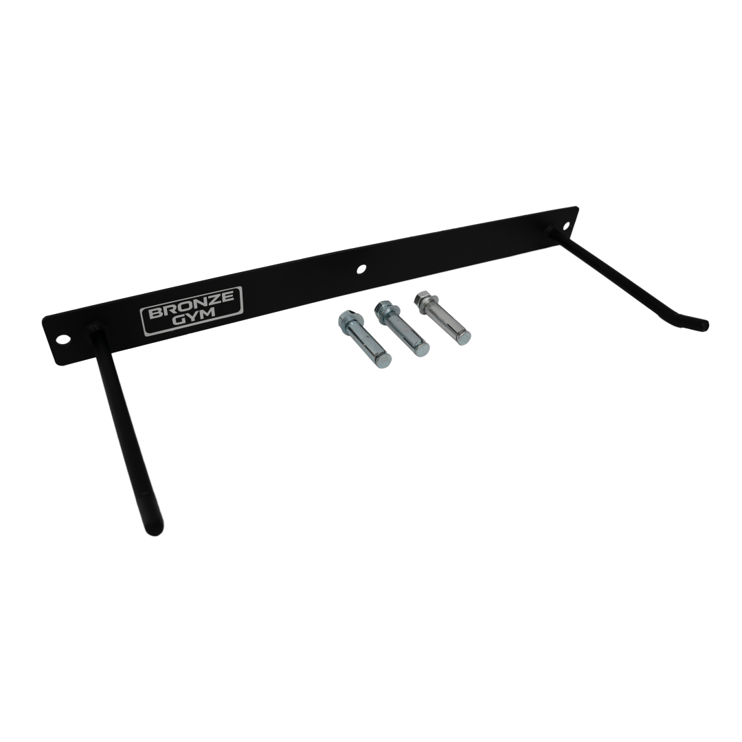 Держатель настенный для матов тренировочных BRONZE GYM размером 55x21x5 см изготовлен из прочного металла с защитным покрытием, обеспечивает удобное и компактное хранение нескольких ковриков. В комплекте элементы крепления, растояние между крюками 47 см., длина крюка 10 см., диаметр 1 см.