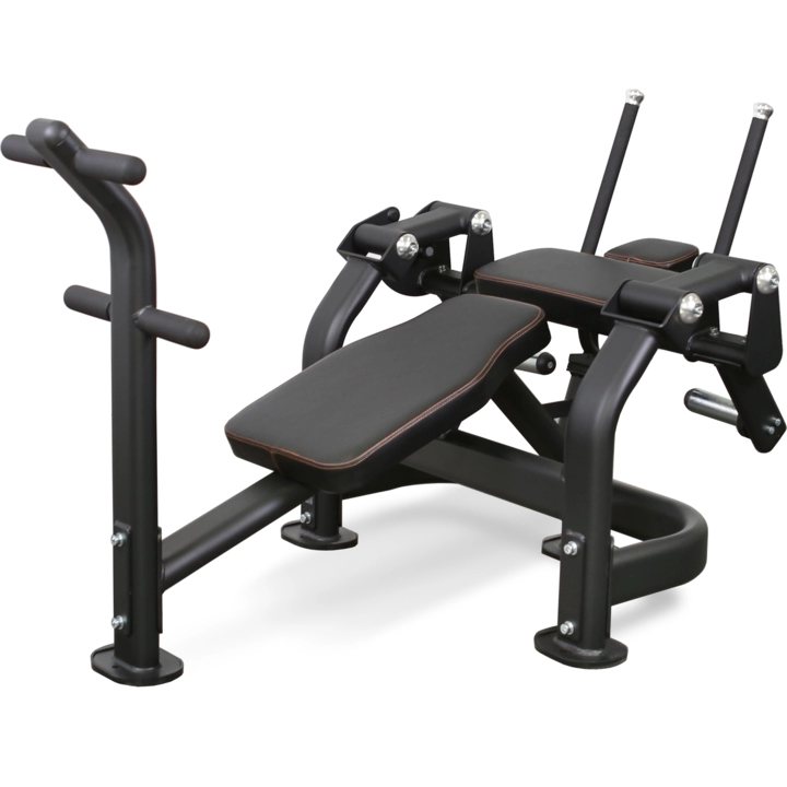 BRONZE GYM PL-1720 – эффективная пресс-машина из линейки силовых тренажеров, нагружаемых дисками. Тщательно проработанная конструкция обеспечивает оптимизированную биомеханику для максимальной результативности тренировок. Тренажер создан на базе прочного рамного основания, которое изготовлено из усиленного стального профиля. Порошковое покрытие рамы нанесено напылением при высоких температурах, что подчеркивает особую прочность оборудования. Широкая скамья с большой опорной спинкой обеспечивает поддержку спины и правильное положение тела. Длинные поручни и двойные валики позволяют выбрать удобное положение рук и ног для правильного выполнения упражнений. Веса не включены в комплектацию тренажера, их необходимо приобретать отдельно.