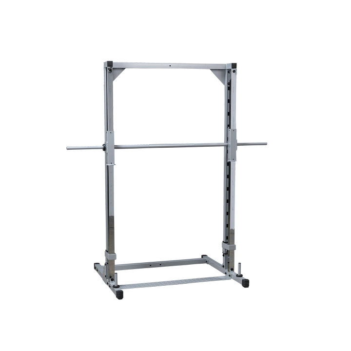 4 стойки из прочной стали 50*50 мм. поддерживают и направляют запатентованный передвижной механизм Super-Glide – он отличается надежностью и может эксплуатироваться в самых интенсивных режимах. 14 позиций блокировки и регулируемые штифты безопасности – залог безопасной тренировки даже при самых больших нагрузках. Гриф диаметром 25 мм., опционально адаптеры OAS14.