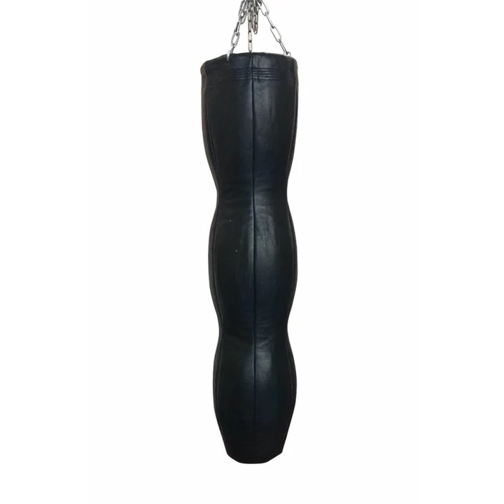 Трехсекционный боксерский мешок «Силуэт» разработан для отработки ударной техники в боксе и единоборствах. Конструкция предусматривает подвесное крепление к потолку или стойке с использованием усиленной цепи. Анатомически изогнутая форма оптимизирована для выполнения ударов коленями и ногами по корпусу. Корпус выполнен из натуральной кожи толщиной 2 – 2,2 мм, которая не продавливается при ударе, обладает отличной амортизацией и выдерживает даже самые мощные удары руками и ногами. В качестве наполнителя используется резиновая крошка и ветошь. Мешок имеет размеры: диаметр 30 см, высота 100 см, вес составляет 35-40 кг.