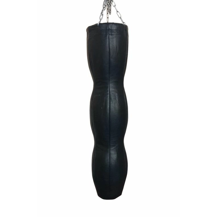 Трехсекционный боксерский мешок «Силуэт» разработан для отработки ударной техники в боксе и единоборствах. Конструкция предусматривает подвесное крепление к потолку или стойке с использованием усиленной цепи. Анатомически изогнутая форма оптимизирована для выполнения ударов коленями и ногами по корпусу. Корпус выполнен из натуральной кожи толщиной 2 – 2,2 мм, которая не продавливается при ударе, обладает отличной амортизацией и выдерживает даже самые мощные удары руками и ногами. В качестве наполнителя используется резиновая крошка и ветошь. Мешок имеет размеры: диаметр 40 см, высота 130 см, вес составляет 70-75 кг.