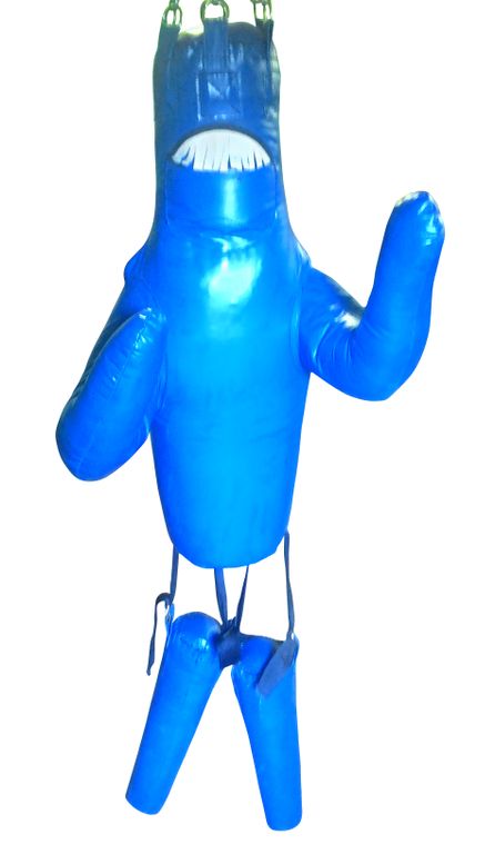 Оригинальный мешок, выполнен с руками в стойке и ноги на лямках, что имитирует удар ногой живого человека.