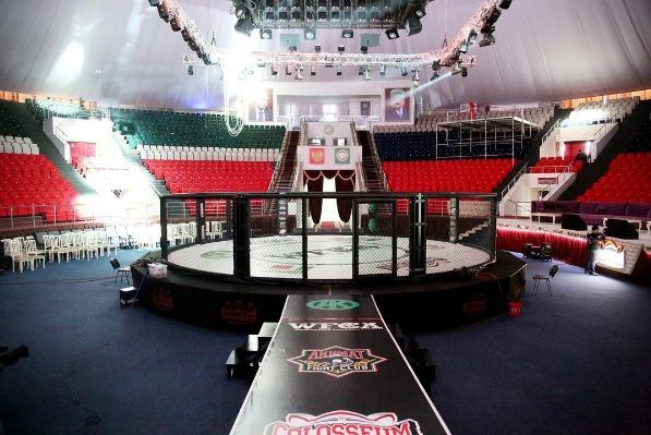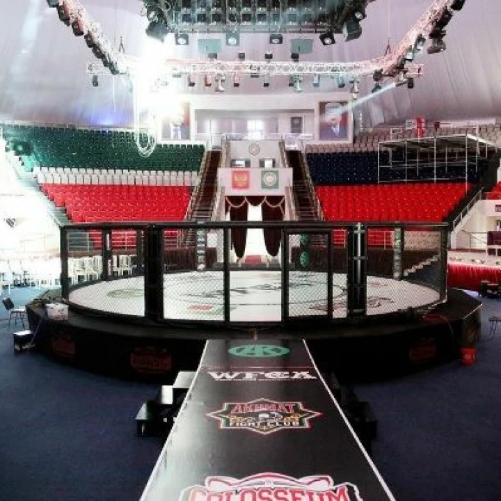 Арена для ММА с круглой боевой зоной диаметр 9 м. на круглом подиуме диаметр 11 м.высота 1 м.