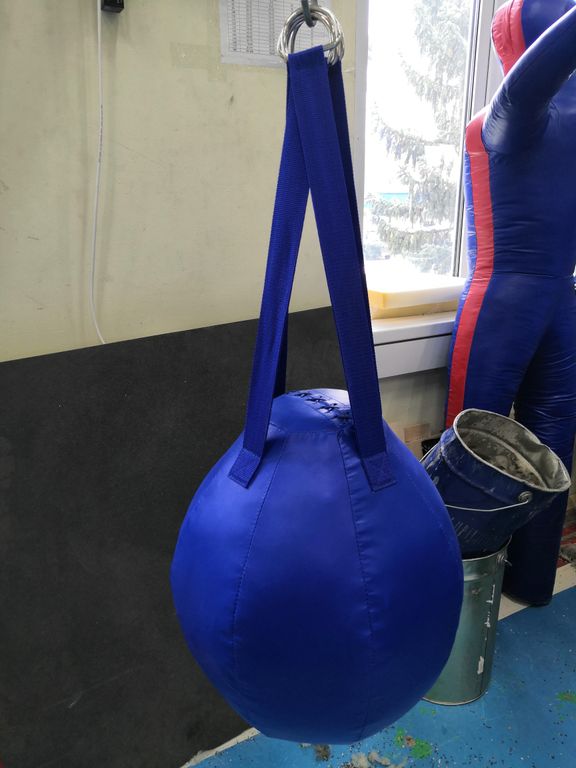 Высота 45 см, диаметр 110 см. Боксёрская груша - снаряд для совершенствования ударов бокса (прямые и боковые удары). Предназначен для развития точности и быстроты ударов. Подвешивается на уровне груди боксёра.
