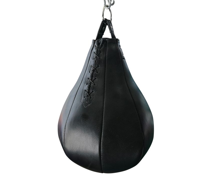 Боксерская груша ADULT SPORT – небольшой кожанный снаряд, обычно круглой или яйцевидной формы, прикрепленный к потолку или стойке при помощи веревки или цепи. Она имеет меньший размер в сравнении с боксерским мешком. Боксерская груша обычно используется для тренировки быстрых и точных ударов, помогая спортсмену развить маневренность, скорость и координацию движений. Также грушу можно использовать для тренировки ударов в голову и корпус. Профессиональные груши изготавливаются из натуральной кожи толщиной 1,7 мм. Они отличаются исключительной надежностью, долговечностью и прочностью. Даже при интенсивном ежедневном использовании в профессиональных залах, где тренируются тяжеловесные боксеры с мощными ударами, такие груши сохраняют свои свойства на протяжении многих лет. В качестве наполнителя используется резиновая крошка и ветошь. Вес боксёрской груши составляет 8 кг.