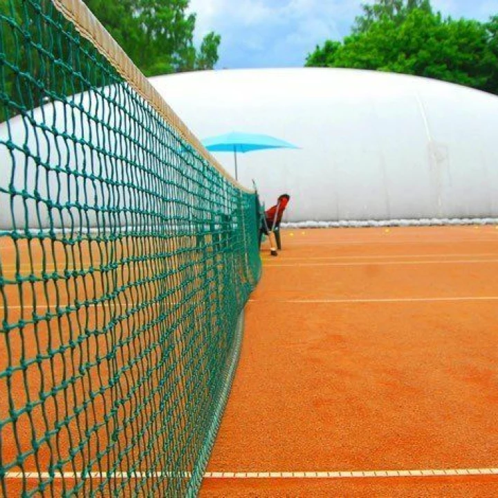 Сетка большой теннис Д=5,0мм яч. 40*40 мм цв. зелёный Размер 1,07*12,8 м обш. с 4-х сторон. верх лента 7см ПП (1 шт.)Цена указана за 1 шт.