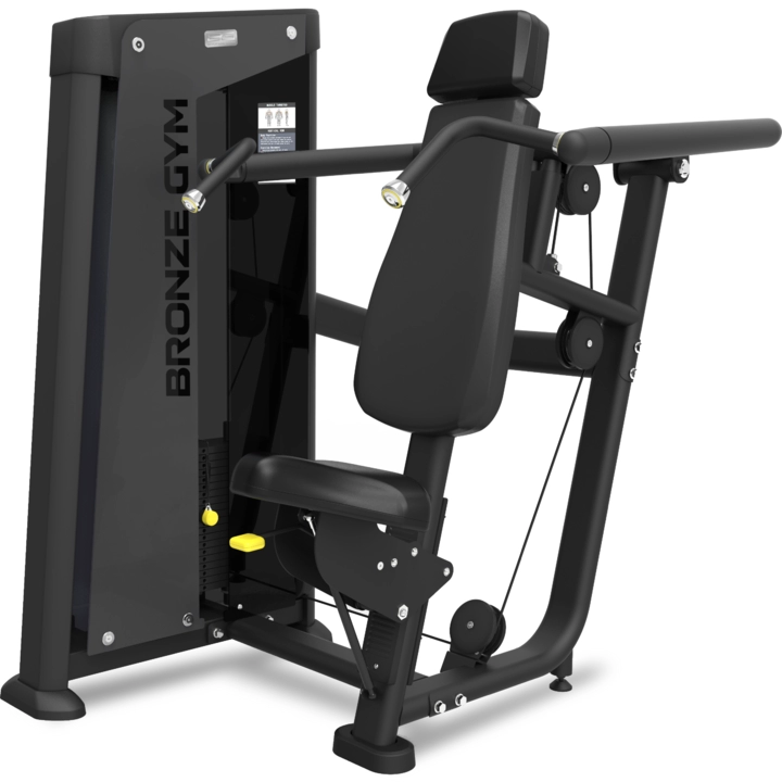 BRONZE GYM NEO 06- профессиональный тренажер коммерческого класса предназначен для выполнения упражнения жим от плеч. C помощью данной модели пользователь сможет проработать плечевые и дельтовидные мышцы. Профиль рамы тренажера, размером 100*50, выполнен из высокопрочной стали толщиной 3 мм. Благодаря двухслойному порошковому покрытию, обеспечивается защита корпуса от внешних повреждений на 98%. Прорезиненные, нескользящие рукоятки модели обеспечивают надежное сцепление рук пользователя во время занятий, что избавляет от риска получения травм. Стальной трос в ПВХ оболочке, общим диаметром 6 мм, отвечает за подъем стека, общий вес которого составляет 100 кг. Сами плиты стека изготовлены из прочной легированной стали. Для простоты использования, все фиксаторы на тренажере выполнены в ярких цветах*. Установленное на модели эргономичное сиденье из высокопрочной экокожи гарантирует повышенный комфорт на протяжении всей тренировки. Подушки с полиуретановым наполнителем максимально смягчают давление на ноги. Фиксатор для ног регулируется по вертикали. В качестве дополнения BRONZE GYM NEO 06 оснащен держателем для бутылки с водой.