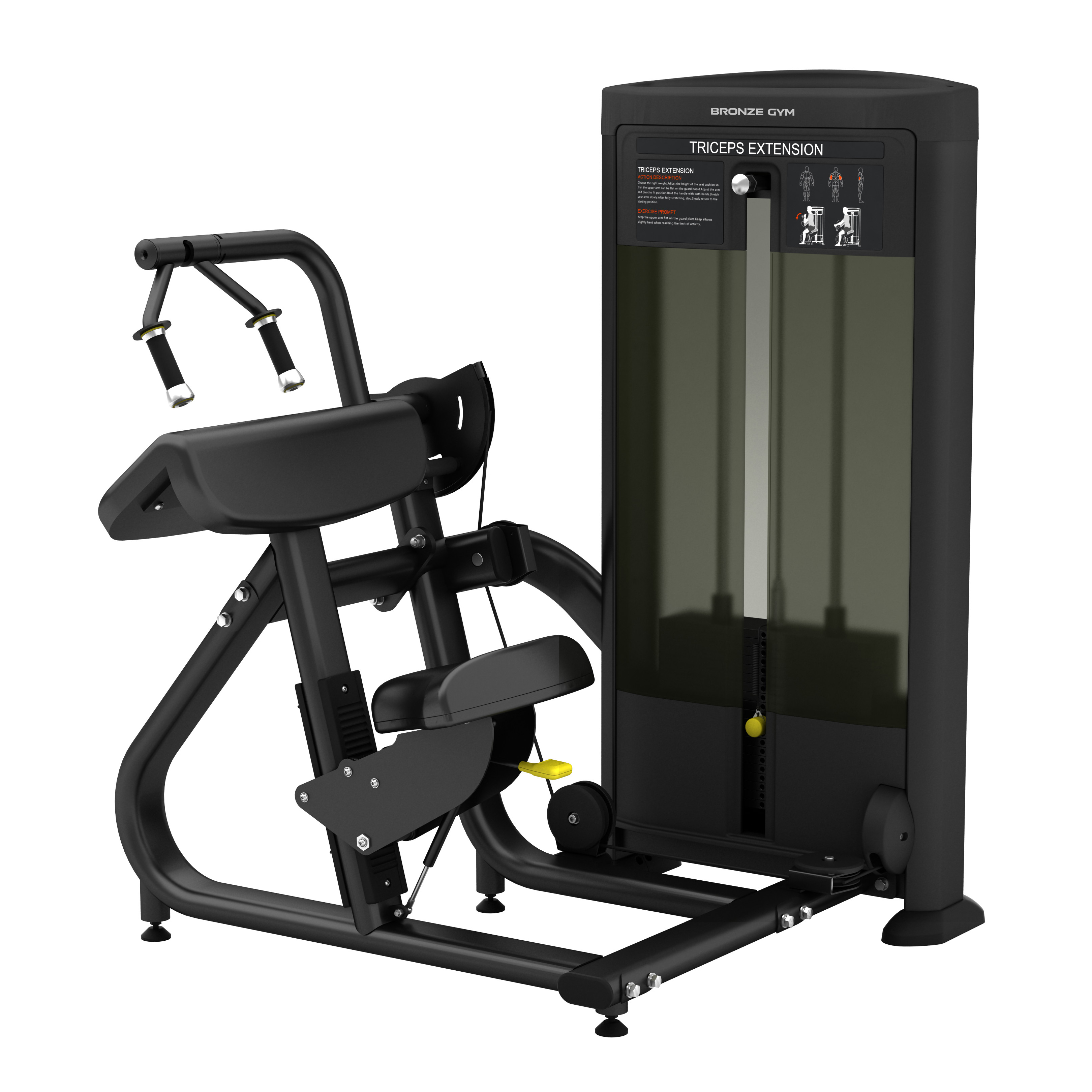 Ассортимент профессиональных тренажеров BLANC от BRONZE GYM включает в себя 24 модели, разработанные для эффективных тренировок всей анатомической системы мышц. Среди них - трицепс-машина BLANC 28, обладающая выдающимся дизайном и функциональностью, способствующими развитию и укреплению мышц трицепса. Этот тренажер является неотъемлемой частью тренировочной программы, способствуя поддержанию и улучшению формы в указанной зоне. Модель BLANC 28 спроектирована с учетом биомеханики движений, что позволяет оптимально сочетать анатомические особенности и функциональность для тренировки мышц трицепса. Анализируя механику движений, этот тренажер обеспечивает правильное распределение нагрузки на целевые группы мышц во время упражнений. При использовании BLANC 28, биомеханика учитывает естественные позиции тела и настраивает оптимальные углы для эффективного развития мышц без избыточного давления на суставы и связки. Такой подход делает тренировки безопасными и эффективными, помогая достигать желаемых результатов без риска для здоровья и снижая возможность получения травм. Дизайн BRONZE GYM BLANC 28 является ключевым аспектом, который делает его современным и привлекательным в тренировочных помещениях. Черная основа, сочетаемая с желтыми акцентами на регулировке веса стека и сиденьи, придает ему уникальный стиль и элегантность. Это сочетание цветов подчеркивает надежность тренажера, что делает его подходящим для различных сред тренировок. Дизайн привлекает внимание и создает яркое впечатление, что способствует привлечению новых клиентов. Профессиональные дизайнеры активно работали над внешним видом оборудования, чтобы достичь гармоничного сочетания функциональности и эстетики в тренировочном пространстве. Процесс изготовления тренажера BLANC 28 на производстве проходит через несколько этапов, каждый из которых направлен на обеспечение высочайшего качества и надежности оборудования. На первом этапе применяют передовые технологии, включая компьютерное моделирование для точного проектирования каждой детали, а также использование современного оборудования для изготовления и сборки тренажера. При производстве используются только материалы высокого качества, такие как прочный металл для создания рамы, обеспечивающей высочайшую прочность и устойчивость к деформациям даже при интенсивном использовании. Дополнительно, модель покрывается тремя слоями электростатической краски, обеспечивая долгосрочную защиту от коррозии и сохраняя первоначальный внешний вид на протяжении долгого времени эксплуатации. BLANC 28 имеет овальную раму с размерами 50*100*T3 мм, что придает ему высокую прочность и стабильность во время тренировок. Этот современный дизайн делает его привлекательным для различных спортивных залов. BLANC 028 относится к крупногабаритным тренажерам, его вес составляет 183 кг. Рама для весового стека имеет форму D-образной конструкции с размерами 53*156*T3 мм, что делает ее идеальной для надежной фиксации стека. Такое решение обеспечивает комфорт и безопасность во время занятий. Вес стека на BLANC 28 составляет 70 кг, что позволяет настраивать тренировочную нагрузку под индивидуальные потребности пользователя. Защитный кожух изготовлен из прочного АБС-пластика методом литья под давлением, что обеспечивает высокую прочность и устойчивость 