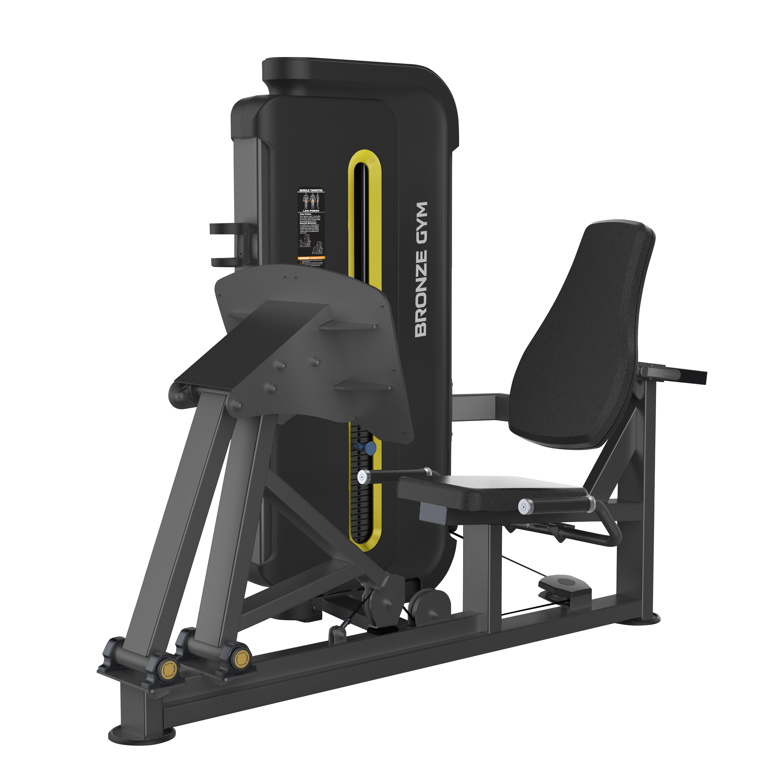 Профессиональные силовые тренажеры от немецкого бренда BRONZE GYM - это отличное дополнение для любого современного клуба, как с точки зрения функционала, так и качества продукции. Отличные биомеханические свойства соответствуют высоким стандартам тренировочного процесса. Даже при высочайших нагрузках, пользователя ожидает полная безопасность. На силовой серии BRONZE GYM установлены самые надежные узлы и компоненты, а также самый качественный пластик. Материалы, использованные на грузоблочном станке, экологически чистые, и, по большей части, могут использоваться повторно. BRONZE GYM BW-3003 - это профессиональный тренажер коммерческого класса для выполнения упражнения жим ногами. Благодаря данной модели, пользователь сможет проработать мышцы ног. Рама BW-3003 с внушительными размерами 100*50 толщиной 2.5 мм и порошковой окраской в два слоя, выражает силу с первого взгляда. Прорезиненные, нескользящие рукоятки оборудования обеспечивают надежное сцепление рук пользователя во время занятий, что избавит от риска получения травм. Стальной трос в ПВХ оболочке общим диаметром 6 мм отвечает за подъем грузов. Между прочим, это один из самых высоких показателей в классе. Весовые плиты изготовлены из прочной легированной стали. Общий вес стека составляет 109 кг. Для простоты использования, все фиксаторы на тренажере выполнены в ярких цветах.* Это очень важная деталь, особенно для слабовидящих пользователей. Установленное на модели эргономичное сиденье из искусственной кожи гарантирует повышенный комфорт пользователя на протяжении всех подходов при выполнении упражнения. Мягкость обеспечивают подушки с полиуретановым наполнителем. Спинка сиденья регулируется по горизонтали. В качестве дополнения BRONZE GYM BW-3003 оснащен держателем для бутылочки с водой и полотенца. *Все спецификации могут быть изменены производителем без уведомления. Продукт и цвет продукта могут отличаться от изображений на сайте.