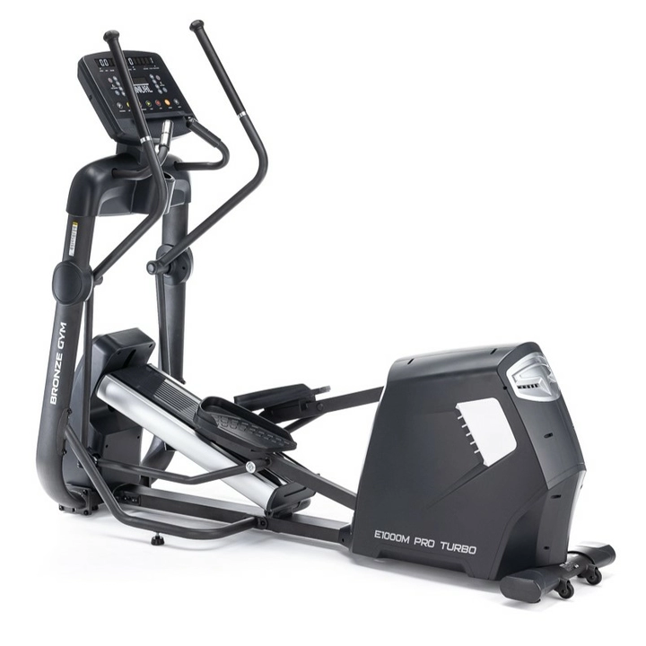 Эллиптический тренажер E1000M NEW от BRONZE GYM — это вершина инноваций в мире фитнеса и новинка легендарной 1000-й серии кардио тренажеров, которые давно завоевали признание среди профессионалов индустрии. Этот эллипсоид создан для того, чтобы удовлетворить потребности самых требовательных пользователей и стать главным инструментом для достижения потрясающих результатов в фитнес-клубах и дома. E1000M NEW представляет собой коммерческий тренажер премиум-класса, идеально подходящий для фитнес-центров с высоким потоком клиентов. Его мощная и устойчивая конструкция с массивной рамой и продуманной эргономикой позволяет выдерживать многочасовые интенсивные тренировки без ущерба для долговечности. Высокопрочная рама с двухслойной покраской и антикоррозийной обработкой гарантирует безупречный внешний вид и надежность на долгие годы эксплуатации. Тренажеры этой серии — это не просто спортивное оборудование, это символ качества и фундаментальности, который говорит сам за себя. Система нагружения E1000M NEW оснащена передовой электромагнитной системой (EMS), обеспечивающей 40 уровней нагрузки и 20 уровней автоматической регулировки наклона. Такой широкий диапазон позволяет легко адаптировать тренировку под любые цели: от легких разминок до высокоинтенсивных кардиосессий. Независимо от вашего уровня подготовки, этот тренажер поможет вам достичь новых высот, предлагая идеальную биомеханику и исключительный комфорт. Длина шага в 558 мм обеспечивает естественное движение и равномерное распределение нагрузки, что делает тренировку не только эффективной, но и безопасной для суставов. Одной из ключевых инноваций этой модели является обновленный LED дисплей с точечной матрицей, который выводит на экран все важные параметры тренировки: время, скорость, дистанцию, калории, пульс, ватты, профиль, уровень нагрузки и наклона. Это позволяет вам полностью контролировать каждый аспект вашей тренировки и добиваться максимально эффективных результатов. Встроенные сенсорные датчики для измерения пульса делают процесс контроля за состоянием организма еще проще, а точность данных позволяет тренироваться на пике возможностей, не выходя за пределы допустимого пульса. E1000M NEW предлагает богатый набор из 25 предустановленных программ, разработанных с учетом самых разных потребностей пользователей — от новичков до профессионалов. В зависимости от ваших целей, будь то улучшение кардиовыносливости, снижение веса или укрепление мышц, вы всегда найдете подходящую программу, которая поможет вам достичь желаемого результата. Еще одним значимым преимуществом E1000M NEW является его продуманная конструкция педального узла. Педали оснащены надежными фиксаторами, которые гарантируют идеальное сцепление и стабильность ног даже при самых интенсивных тренировках. Рифленая поверхность педалей и прорезиненные многопозиционные ремешки создают дополнительный комфорт, позволяя сосредоточиться на тренировке и не беспокоиться о безопасности. Кроме того, E1000M NEW оборудован всем необходимым для современного пользователя. Вы можете зарядить мобильное устройство через встроенный USB-порт, а также наслаждаться любимой музыкой или подкастами, используя подставку под планшет. Встроенный держатель для бутылочки с водой позволяет поддерживать водный баланс, не прерывая тре