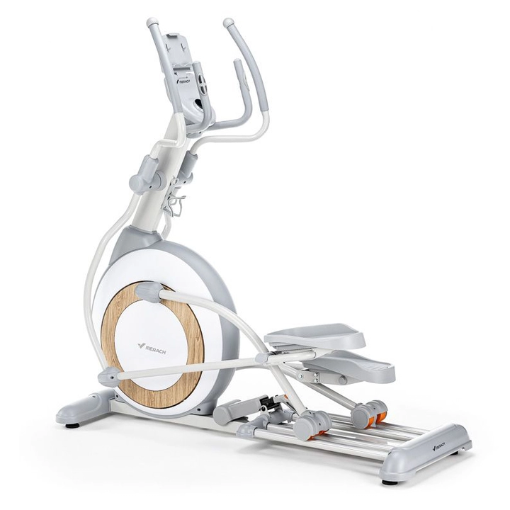 MERACH K60 - электромагнитный эллиптический эргометр с переднерасположенным приводом, который устанавливает новые стандарты в тренировочном оборудовании. Белый цвет в сочетании с эффектом деревянной вставки обыграют любой современный интерьер. Уникальное расположение маховика спереди позволяет лучше настроить общую траекторию движения, сократить расстояние между педалями и создать идеальный шаг. Результатом является действительно эффективная и щадящая тренировка для суставов, в то время как эллипсы с заднерасположенным маховиком недостаточно фокусируют нагрузку на мышцы бедер и ног, либо оказывают избыточное давление на колени. MERACH K60 обеспечивает минимальное расстояние между педалями (супермалый Q-фактор E.S.Q.F.), что является ключевым фактором для эффективных беговых движений. Оптимальная длина шага составляет 49 см, что подчеркивает важность биомеханических параметров данного тренажера. Погрузитесь в потрясающую плавность движения на любом уровне нагрузки благодаря электромагнитной системе и сбалансированному маховику c собственным весом 8 кг. Бортовой компьютер с элегантным круглым LED-дисплеем выводит все основные параметры тренировки - время, дистанцию, скорость, количество оборотов в минуту, калории и Ватты. Вас ждут 32 предустановленные программы, разработанные для тренировки скоростных качеств, выносливости, укрепления сердечно-сосудистой системы и похудения. Встроенные контактные сенсорные датчики в поручнях тренажера позволяют легко контролировать пульс. А возможность подключения к популярным коучинговым приложениям MERACH и KINOMAP через смартфон по Bluetooth позволяет вам разнообразить свою тренировку и достичь новых высот. MERACH K60 - ваш идеальный спутник для достижения результатов и непревзойденного комфорта в тренировках. Погрузитесь в мир премиум-качества с MERACH.