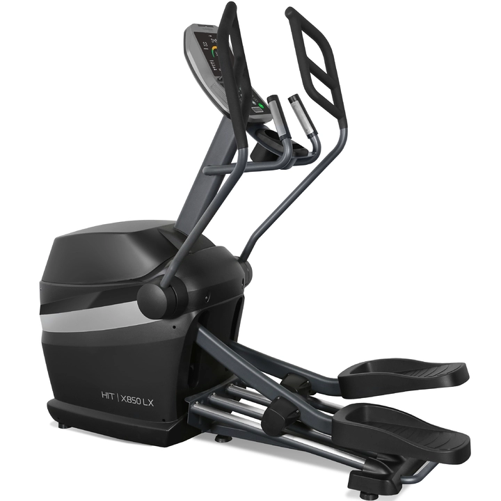 Серия HIT от Svensson Industrial, представленная моделями 850 и 850 LX* - премиальная профессиональная серия, рассчитанная на максимальные режимы коммерческой эксплуатации (heavy commercial). Произведенные на Тайване, тренажеры отличаются высоким качеством сборки, а также использованием самых надежных узлов и компонентов. Дизайн выполнен в традиционных для Svensson Industrial строгих и изящных формах. Высокий класс оборудования и его надежность подчеркивает черный матовый цвет с использованием хромированных и серебристых элементов. К числу основных преимуществ HIT X850 LX относится индукционная система нагружения (индукционный тормоз). На сегодняшний день это наиболее совершенная сиcтема нагрузки у вело- и эллиптических тренажеров. Торможение маховика происходит за счет магнитного поля, которое создается катушкой с поданным на неё электрическим током, расположенной в непосредственной близости от маховика. При увеличении силы тока в проводах катушки возрастает сила магнитного поля, и наоборот - при уменьшении силы тока поле ослабевает, за счет чего и происходит изменение нагрузки. Преимущества индукционного тормоза следующие. Во-первых, число взаимодействующих трущихся элементов сведено к минимуму, поэтому и общая надежность системы гораздо выше. Во-вторых, ход тренажера гораздо мягче и плавнее, уровень шума при этом ниже тренажеров с иной системой нагружения. В-третьих, индукционному тормозу (в связке с генератором) не нужно подключение к сети - а это экономия электричества и отстутствие лишних проводов. Помимо надежной высокотехнологичной системы нагружения, HIT X850 LX обладает рядом других важных преимуществ. С точки зрения биомеханики тренажер превосходно справляется со своими задачами. Передний привод с маховиком 30 кг обеспечивает правильную и естественную траекторию движения. Длина шага 53 см достаточна для комфортной эффективной тренировки. Расстояние между педалями (супермалый Q-Фактор E.S.Q.F. ) составляет всего 3 см - это это один из лучших показателей в отрасли и еще один плюс в копилку бимеханики HIT X850 LX. Безусловно, важна рама - иначе тренажер просто не выдержит высокоинтенсивных нагрузок. Эллипсоид построен с использованием сварного профиля максимальной прочности (Ultra Heavy Gauge Steel). Именно поэтому нетто вес изделия составляет внушительные 117 кг, а максимальный вес рассчитан на пользователей до 200 кг. Педальный узел построен на базе переднего привода и использует 4 рельсы для качественного и надежного скольжения педалей. Тренировочный компьютер представлен дисплеем профессионального уровня. Основной экран использует светодиоды (LED), а 4 дополнительных буквенно-цифровых экрана работают на жидких кристаллах (LCD). На экран компьютера выводятся все основные данные - профиль тренировки, скорость, дистанция, количество оборотов в минуту, калории, ватты и пульс. При желании можно воспользоваться одной из 12 предустановленных программ, рассчитанных на снижение веса, тренировку выносливости, скоростных качеств, реабилитацию и т.д. На отдельную клавишу консоли выведены 3 режима высокоинтервальных тренировок. Ватт-программы также разделены и активируются разными клавишами. В первом случае нагрузка в ваттах (в диапазоне от 10 до 500 ватт) выставляется перед тренировкой и сохраняется неизменной до ее окончания. Во-втором - это 6 программных профилей с изменяе