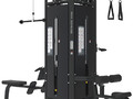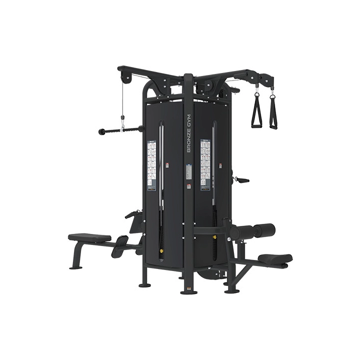 4-ех позиционная профессиональная мультистанция BRONZE GYM MS-1005 – эффективный профессиональный силовой тренажер, предназначенный для коммерческого использования, который позволяет комплексно прорабатывать все тело, обеспечивая отличный уровень атлетической подготовки. Тренажер включает в себя 2 станции для тяги сверху, станцию для гребной тяги, и одну кабельную колонну, что позволяет одновременно заниматься на тренажере до четырех пользователей. Передача нагрузки осуществляется с помощью тросово-блочной системы, в которой используется прочный трос толщиной 6 мм. Широкая рамная конструкция способствует дополнительной стабильности, обеспечивает равномерное распределение нагрузки исключая раскачивание и вибрацию. Тяговая колонна позволяет выполнять упражнения только одной рукой, но это не мешает попеременно прокачать обе стороны.. Вращающиеся рукояти обеспечивают свободные и естественные движения. На верхней перекладине предусмотрен турник, рукоятки которого позволяют выполнять подтягивания широким, нейтральным и узким хватом, акцентируя нагрузку на необходимые группы мышц. Конструкция мультистанции MS-1005 включает 4 грузовых стека общим весом 324 кг. Удобный выбор нагрузки осуществляется с помощью штифтов.