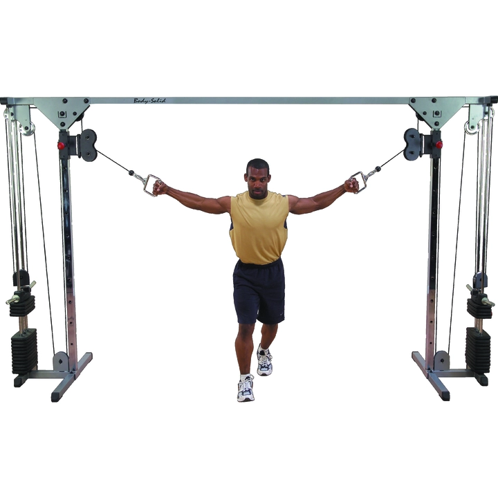 Кроссовер BODY SOLID GCCO150S / GCCO150 — профессиональный многофункциональный тренажёр, предназначенный для выполнения широкого спектра упражнений с использованием тросов и блоков. Конструкция обеспечивает равномерную нагрузку на мышцы верхней и нижней частей тела, а также подходит для функциональных и реабилитационных тренировок. Модель оснащена двумя независимыми грузоблоками, регулируемыми по высоте направляющими и прочной рамой из стального профиля. Шкивы вращаются на подшипниках, что обеспечивает плавность и точность движения. Благодаря универсальной конструкции тренажёр позволяет выполнять упражнения на грудные мышцы, спину, плечи, руки и ноги. Дополнительно к весовому стеку, можно увеличить нагрузку за счет дополнительных дисков. Устанавливаются на гриф, можно загрузить 10 дисками, вес каждого диска не должен превышать 15 кг.