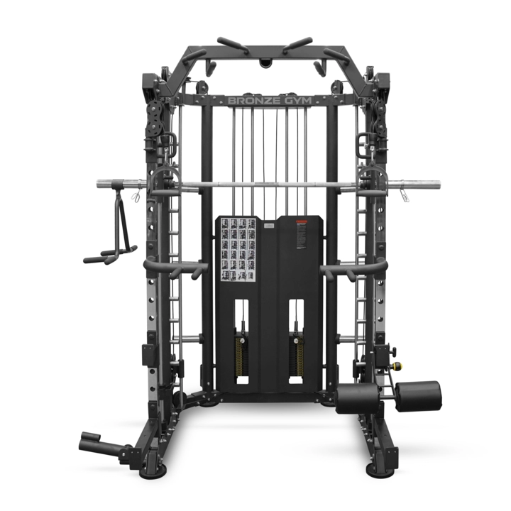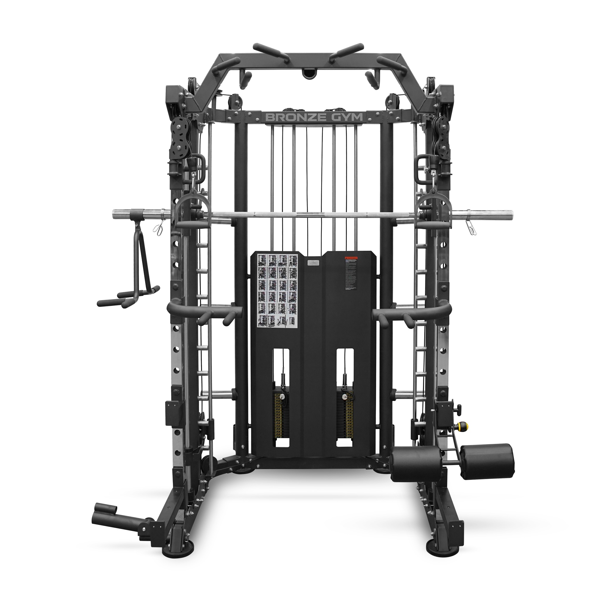 BRONZE GYM YARD- профессиональный тренажер коммерческого класса. Данная модель подходит для выполнения большого количества упражнений на развитие различных групп мышц. Профиль рамы тренажера выполнен из высокопрочной стали толщиной 3 мм. Благодаря двухслойному порошковому покрытию, обеспечивается защита корпуса от внешних повреждений на 98%. Прорезиненные, нескользящие рукоятки модели обеспечивают надежное сцепление рук пользователя во время занятий, что избавляет от риска получения травм. Стальной трос в ПВХ оболочке, общим диаметром 6 мм, отвечает за подъем стека. Сами плиты стека изготовлены из прочной легированной стали. Для простоты использования, все фиксаторы на тренажере выполнены в ярких цветах. Подушки с полиуретановым наполнителем максимально смягчают давление на ноги. Фиксатор для ног регулируется по вертикали. BRONZE GYM YARD оснащен многопозиционным турником и держателями для дисков.