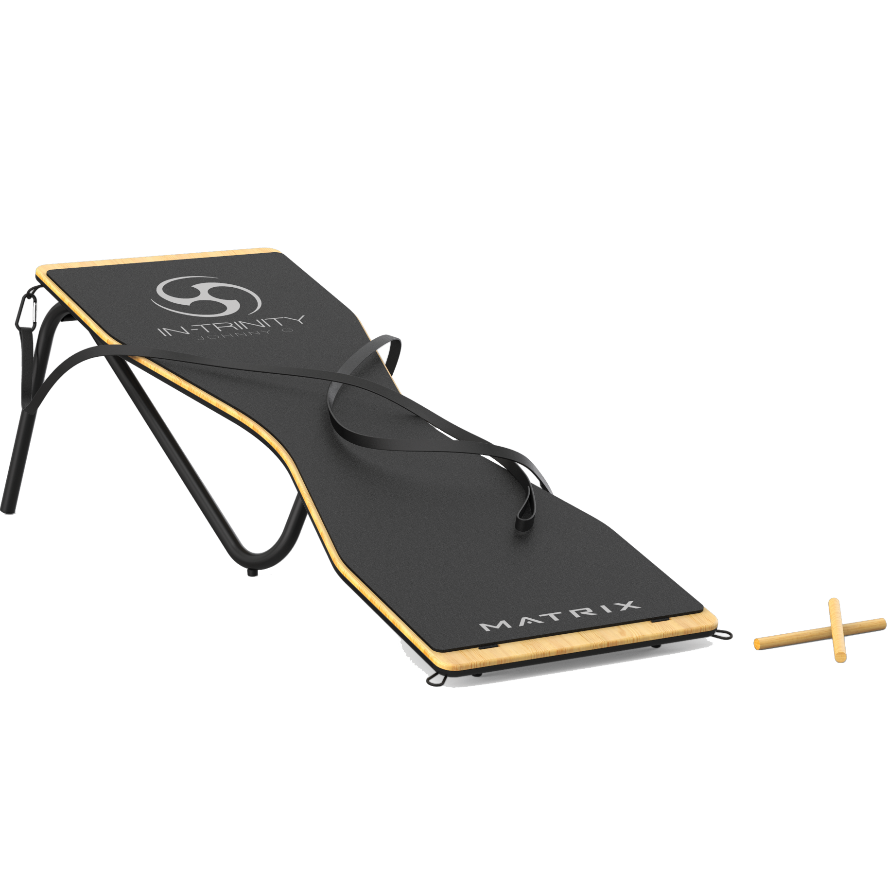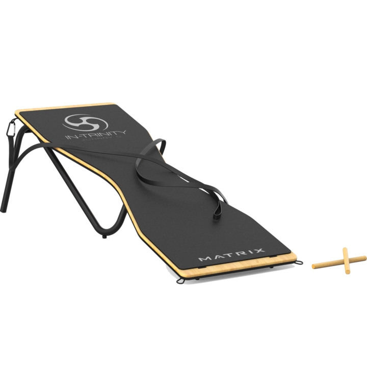 In-Trinity®от Matrix - это инновационная наклонная тренировочная платформа, которая увеличивает силу, повышает гибкость, улучшает баланс, координацию и подвижность. Тренировки на In-Trinity - это совокупность традиционных дисциплин, включая йогу и боевые искусства, а также широкий выбор упражнений для тела, которые изменят общий тонус организма и повысят внимательность. В чем особенность этой платформы? Во-первых, это дополнительное пространство под ней. Благодаря ему, пользователи могут увеличивать амплитуду движений и растяжку, чего не сделаешь на ровном полу. Во-вторых, одновременно положительный и отрицательный наклон платформы. Это позволяет менять нагрузку для привычных упражнений и задействовать дополнительные группы мышц. В-третьих, присоединяемые ремни, которые служат продолжением платформы и удерживают пользователя в любом положении. Они обеспечивают нагрузку и баланс и позволяют пользователям выполнять более сложные движения. И, наконец, деревянные палочки. Идея взята из тренировок по боевым искусствам. Палочки для In-Trinity служат продолжением рук и кистей пользователей, что обеспечивает необходимую длину и дополнительную нагрузку. Наклонная платформа для тренировок позволяет выполнять оригинальные упражнения, которые невозможно выполнить на полу, и воспринимать традиционные упражнения по-новому. С тренировочными программами In-Trinity доски легко и просто внедрить в текущие программы групповых занятий. Каждая программа содержит нюансы, уровни прогресса и разные модификации для обеспечения точной техники и привлечения пользователей любого уровня подготовки. Инструкторы смогут создавать собственные профили тренировок или внедрять In-Trinity в тренировки по йоге и работе с собственным весом для большего разнообразия и повышенного внимания у клиентов. В комплектацию входит сама платформа, металлическая фигурная опора, мат, который легко снимается и его можно использовать как обычный коврик на полу, пара пристегиваемых ремней и пара деревянных палочек.