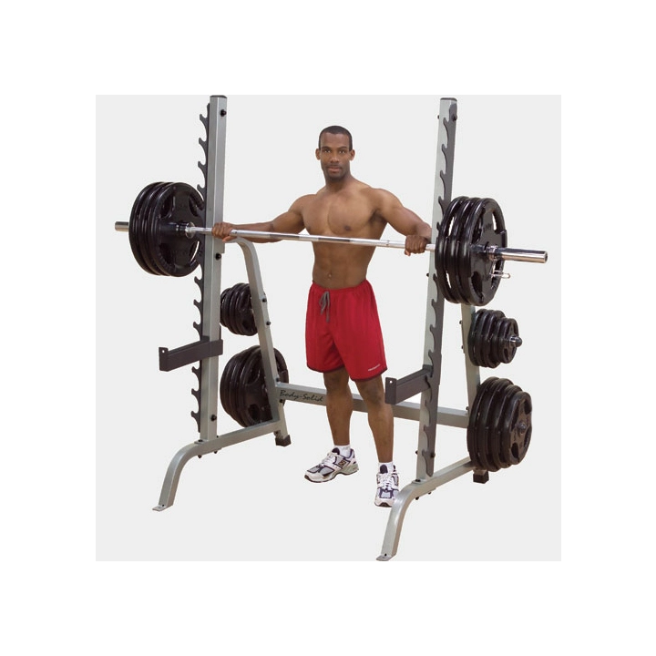 Body Solid GPR-370 является одним из базовых тренажеров для тренировок со штангой. Рама с обратным углом наклона стоек 7 градусов создает биомеханически верную траекторию подъема веса. На тренажере можно выполнять такие упражнения как приседания со штангой на плечах, поднятие на носки, выпады, мертвую тягу, вертикальный жим и многие другие. Для большего разнообразия возможен вариант использования с различными скамьями. Конструкция тренажера построена на высокопрочном стальном профиле 50*76 мм. и выдерживает нагрузку до 450 кг. Имеет 14 точек фиксации штанги, позволяет атлету изменять высоту расположения штанги на стойках не снимая блины. Высота нижнего крюка (фиксирующего гриф) составляет 363 мм. от поверхности пола.