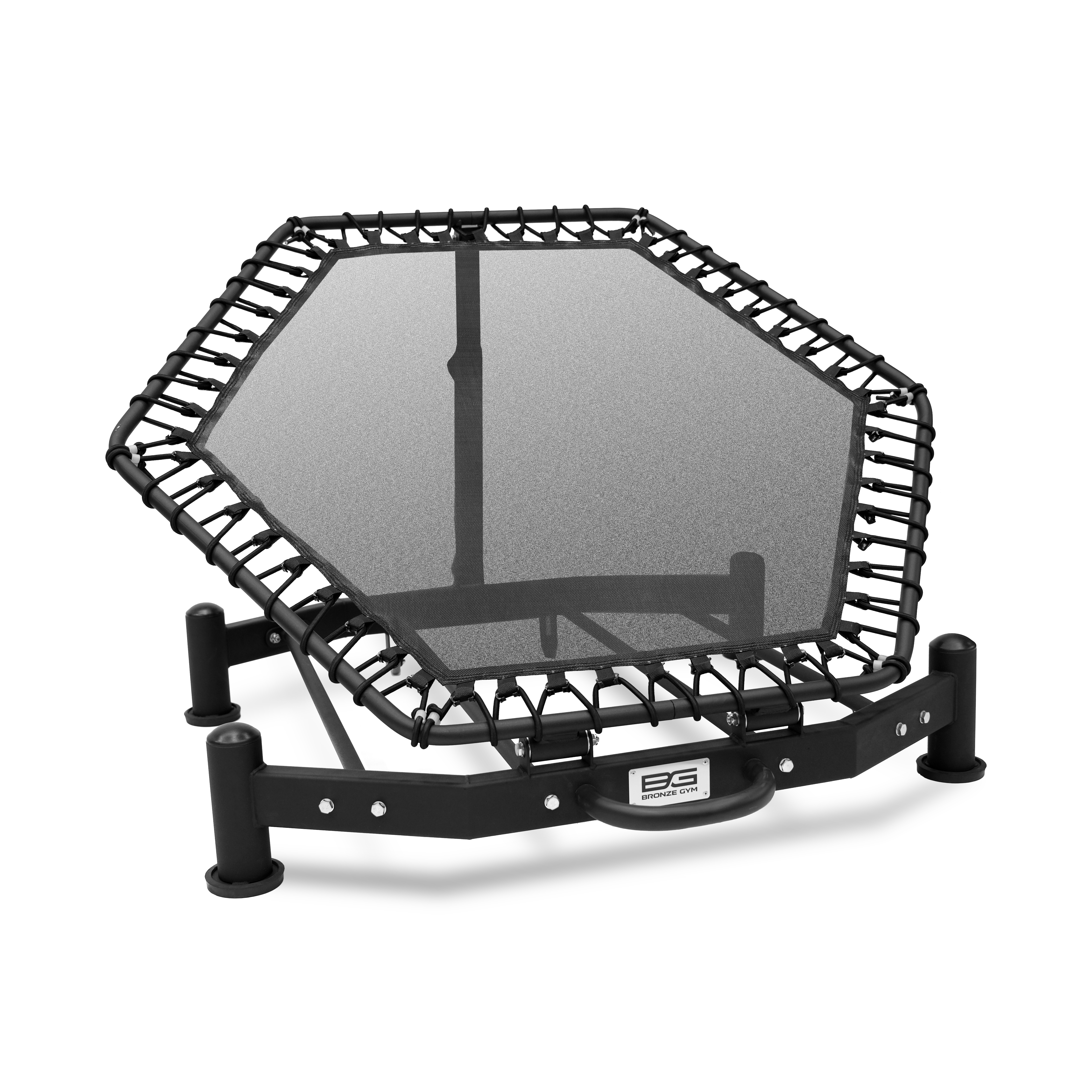 Ребаундер BRONZE GYM предназначен для силовых тренировок и разминочных упражнений. Броски в батут осуществляются медболами различного веса. Такие упражнения развивают координацию движений, ловкость, силу. Угол наклона батута BRONZE GYM можно изменить в зависимости от дистанции и роста: 60, 55, 50, 45, 40, 35 градусов к горизонту, так же предусмотрен вариант установки батута в горизонтальное положение. Несущая рама опоры ребаундера изготовлена из качественной стальной профильной трубы, с деталями из качественного стального листового материала толщиной.