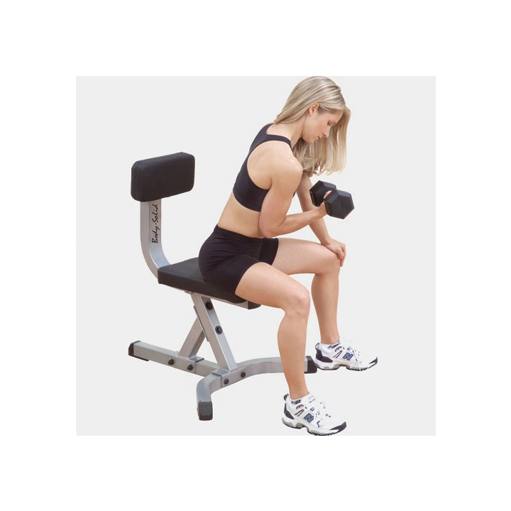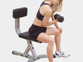 Скамья-стул с вертикальной спинкой. Прочная устойчивая конструкция обеспечивает стабильность при выполнении упражнений с гантелями и штангой. Сверхплотная подушка DuraFirm™ c двойным швом создает должный комфорт тренировки.