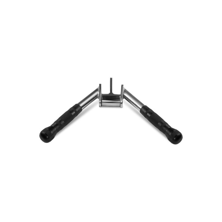 Гриф V-образный для бицепса и трицепса от бренда профессионального фитнес оборудования Bronze Gym. В основе спортивного снаряда прочная сталь. Модель оснащена рукоятками из PU-материала с рифленым узором для более удобного и цепкого хвата.