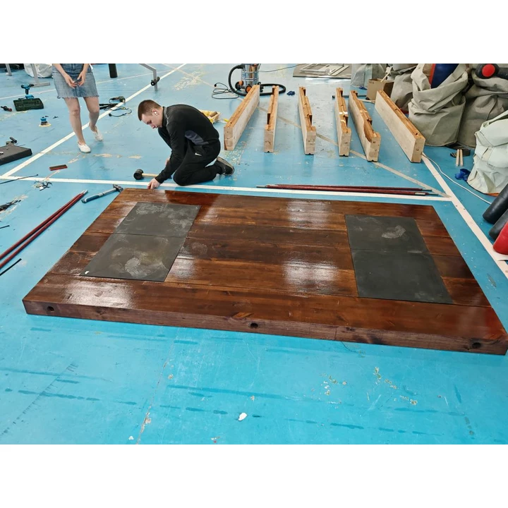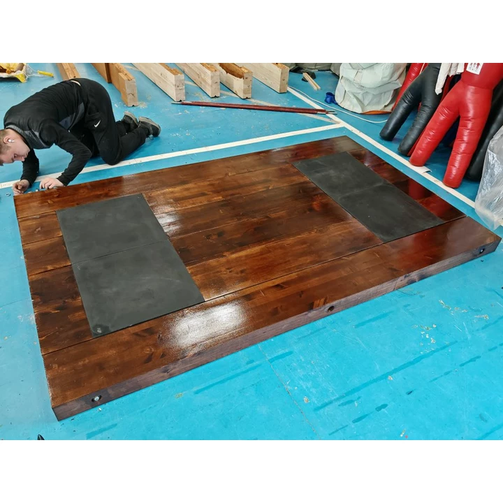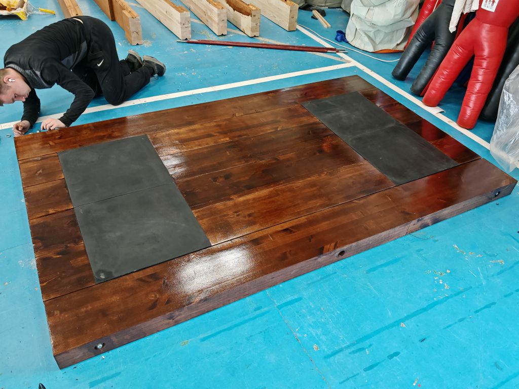 Помост тяжелоатлетический (для становой) эконом с морением. Клееный брус (сосна). Объём 0.61 куб/м, Вес 217 кг. 6 мест