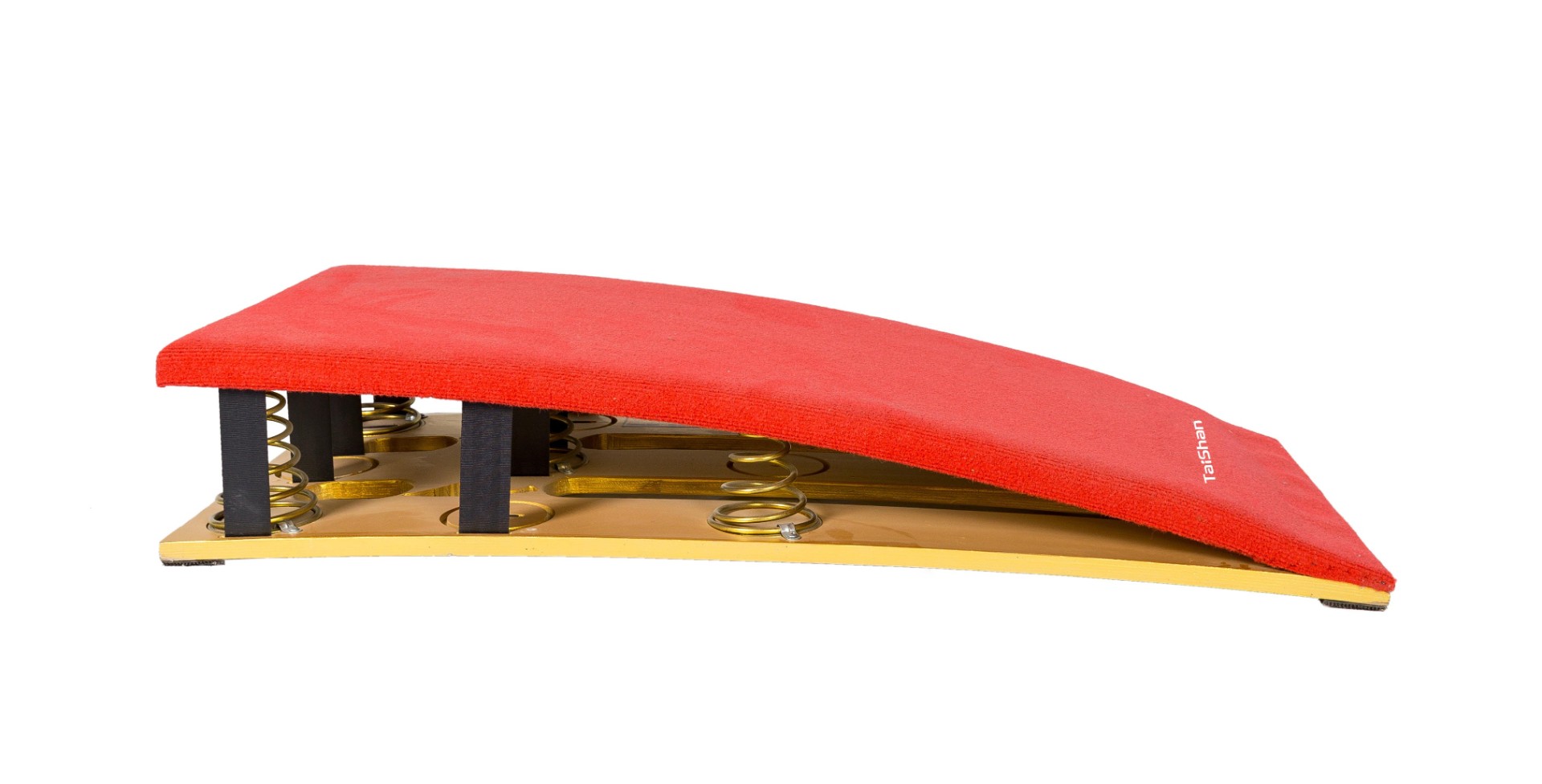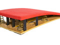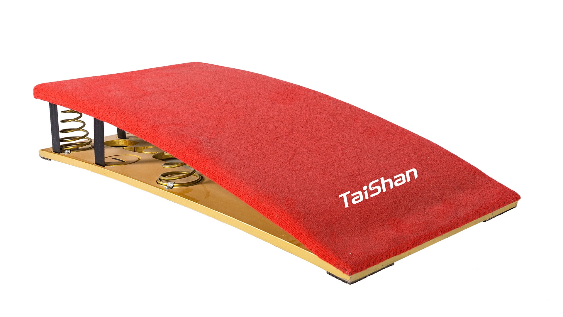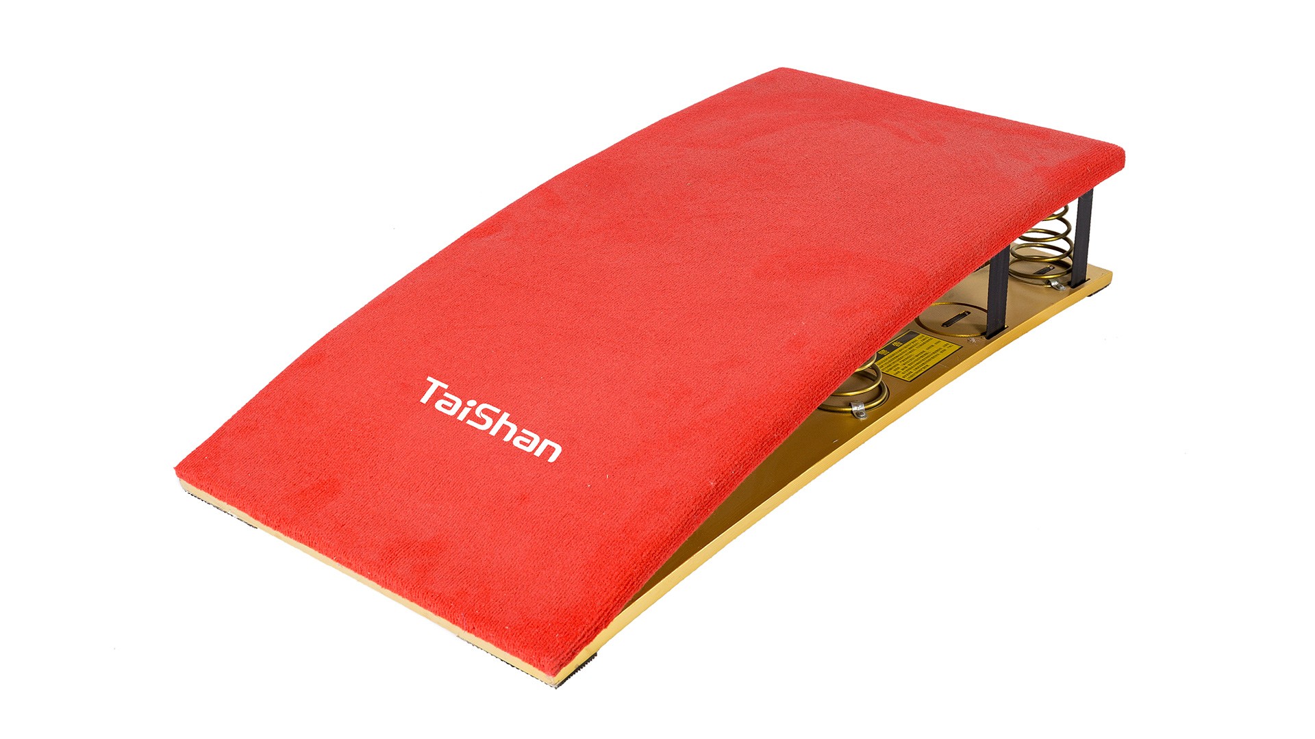 Мягкий пружинный мостик (5 пружин) используется для облегчения прыжков. Многослойная композитная древесина, армированная стекловолокном, устойчива к разрушению и обеспечивает длительный срок службы. Поверхность покрыта серым ворсистым ковровым покрытием, приклеенным к слою высокоэластичной резины и поролона толщиной 2 см, что значительно повышает амортизационные свойства. Нижняя часть оснащена специальной противоскользящей накладкой, способствующей более эффективному выполнению сложных элементов спортсменами. Конструкция точно центрируется пятью коническими пружинами разной высоты; основание оснащено устройством предотвращения соскальзывания. Размеры: длина 120 см × ширина 60 см × высота 22 см. Вес: 26 кг. Сертификат FIG.