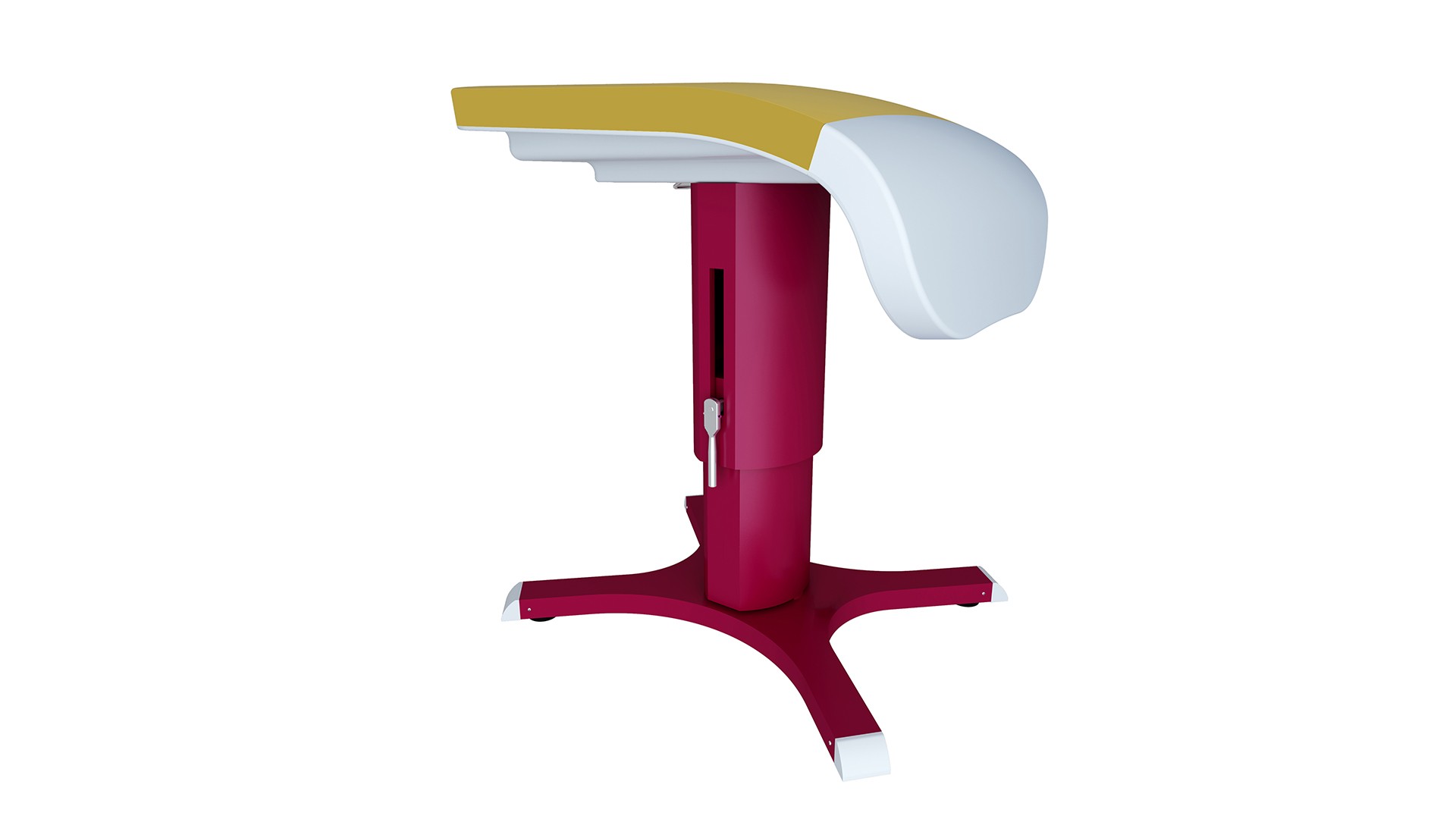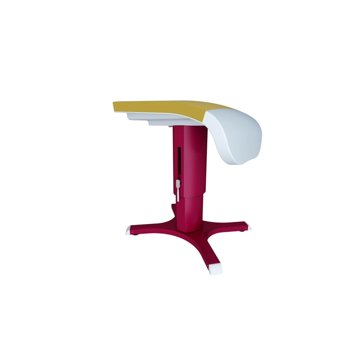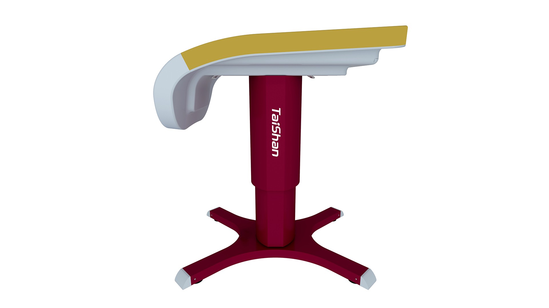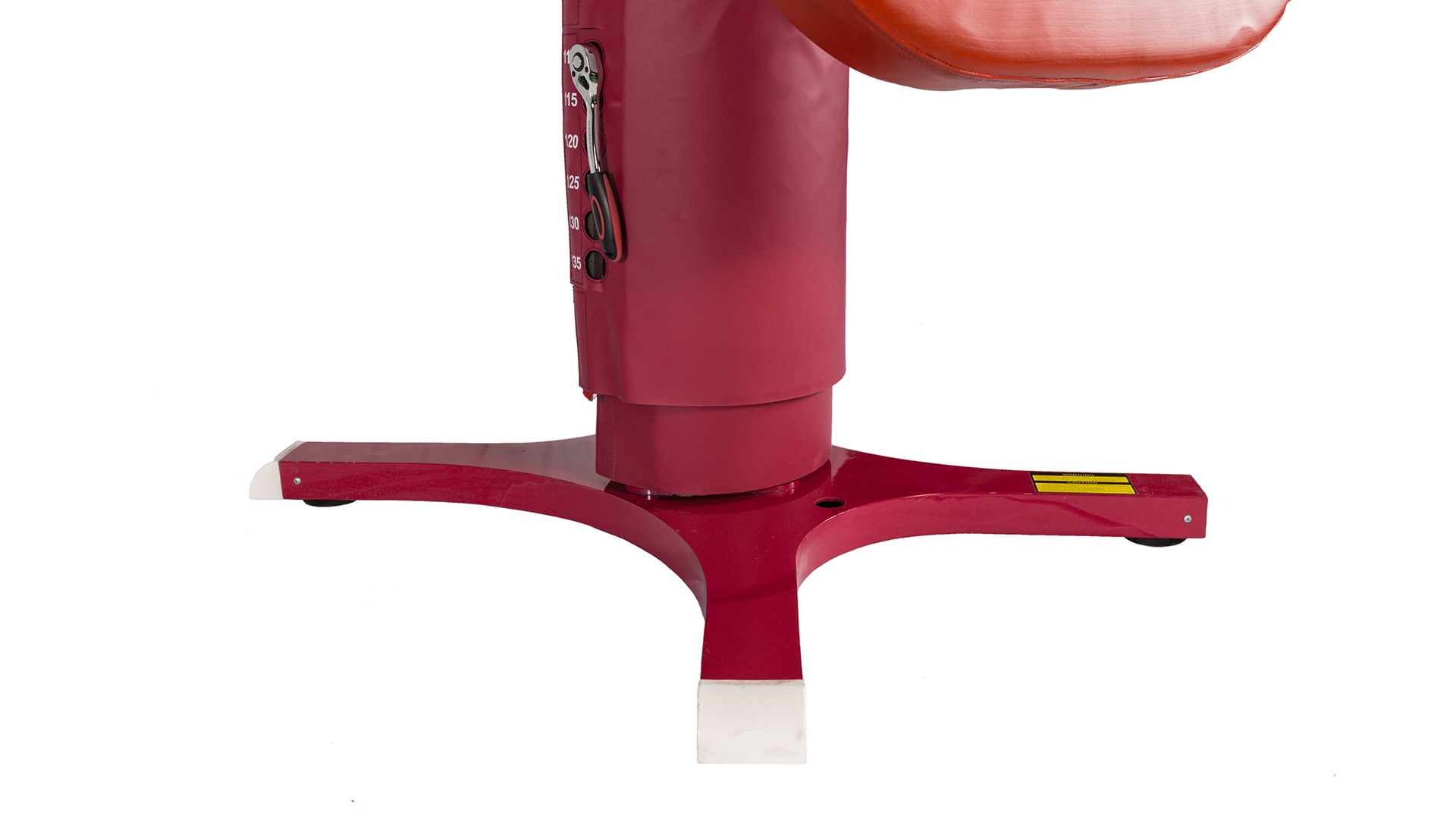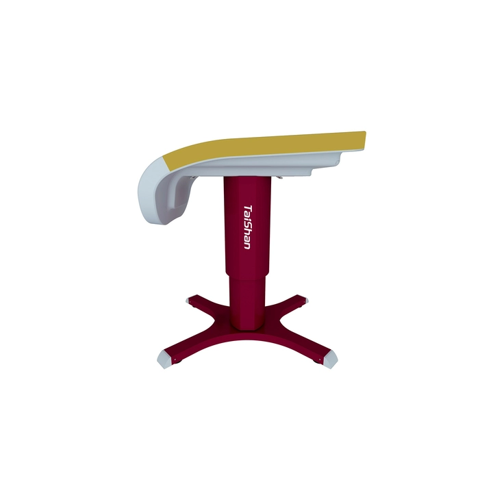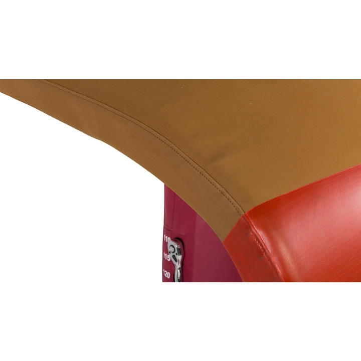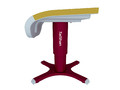 Соревновательный конь для опорного прыжка используется для соревнований и тренировок. Корпус коня изготовлен из композитного материала, армированного стекловолокном, что обеспечивает высокую общую жёсткость конструкции. Поверхность выполнена из специального материала с повышенным коэффициентом трения, хорошо удерживает магнезию; дополнительно поверхность соединена со специальным амортизирующим слоем, что улучшает условия для выполнения упражнений спортсменами. Стойка изготовлена из высококачественной стальной пластины методом однократной гибки и сварки; имеет специальную обработку поверхности и обеспечивает плавную регулировку высоты. Основание оснащено четырьмя специальными резиновыми компенсаторами, которые эффективно защищают напольное покрытие и позволяют использовать снаряд на неровных поверхностях. Оснащён системой анкерного крепления к полу, совместимой с различными типами анкеров, что повышает устойчивость коня для прыжков. Металлические поверхности обработаны методом запекания лакокрасочного покрытия. Размеры корпуса коня: длина 120 см, ширина 95 см. Размеры основания: 115 см × 95,5 см (длина × ширина). Диапазон регулировки высоты: 105–135 см с шагом 5 см. Вес: 180 кг. Цвет: красный (Pantone 1955C).