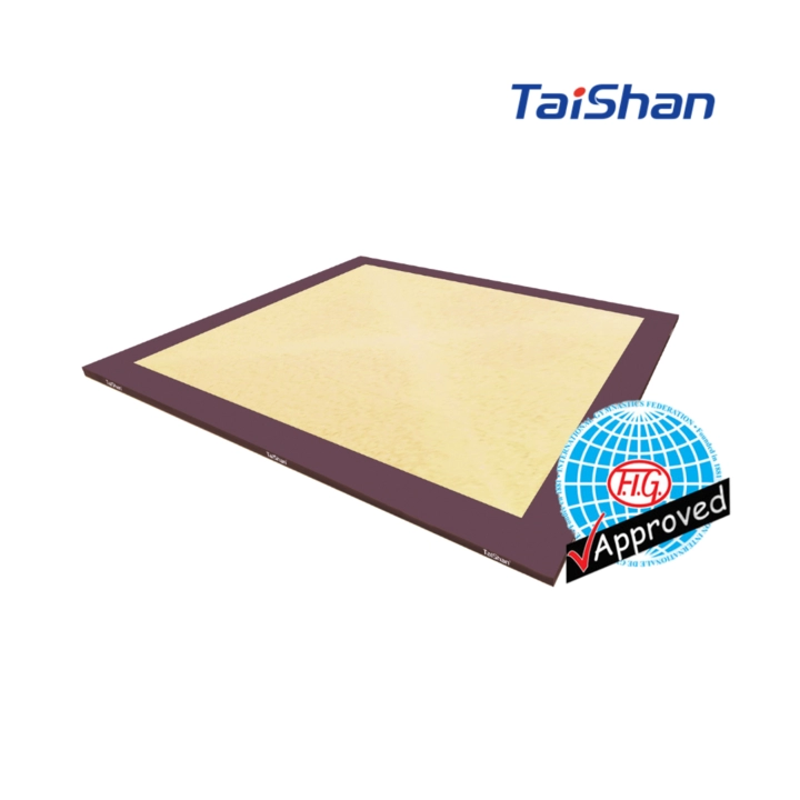 Ковер для художественной гимнастики — это напольное покрытие, предназначенное для профессиональных соревнований и тренировок. Его размеры составляют 1410 × 1410 см, соревновательная зона — 1200 × 1200 см, длина по диагонали — 1697 см. Оснащён системой демпфирования из пенополиэтиленовых блоков, которая эффективно поглощает вибрации и обладает высокими амортизационными свойствами. Ворсистый материал обеспечивает мягкость поверхности, а антистатическая и нескользящая основа гарантирует надёжное сцепление и точность выполнения. Конструкция состоит из двух слоев досок с мощными пряжками, обеспечивающими прочное соединение и устойчивость основания. Такое покрытие соответствует требованиям для соревнований международного уровня (имеют действующий сертификат Международной Федерации Гимнастики FIG), и тренировочного процесса.