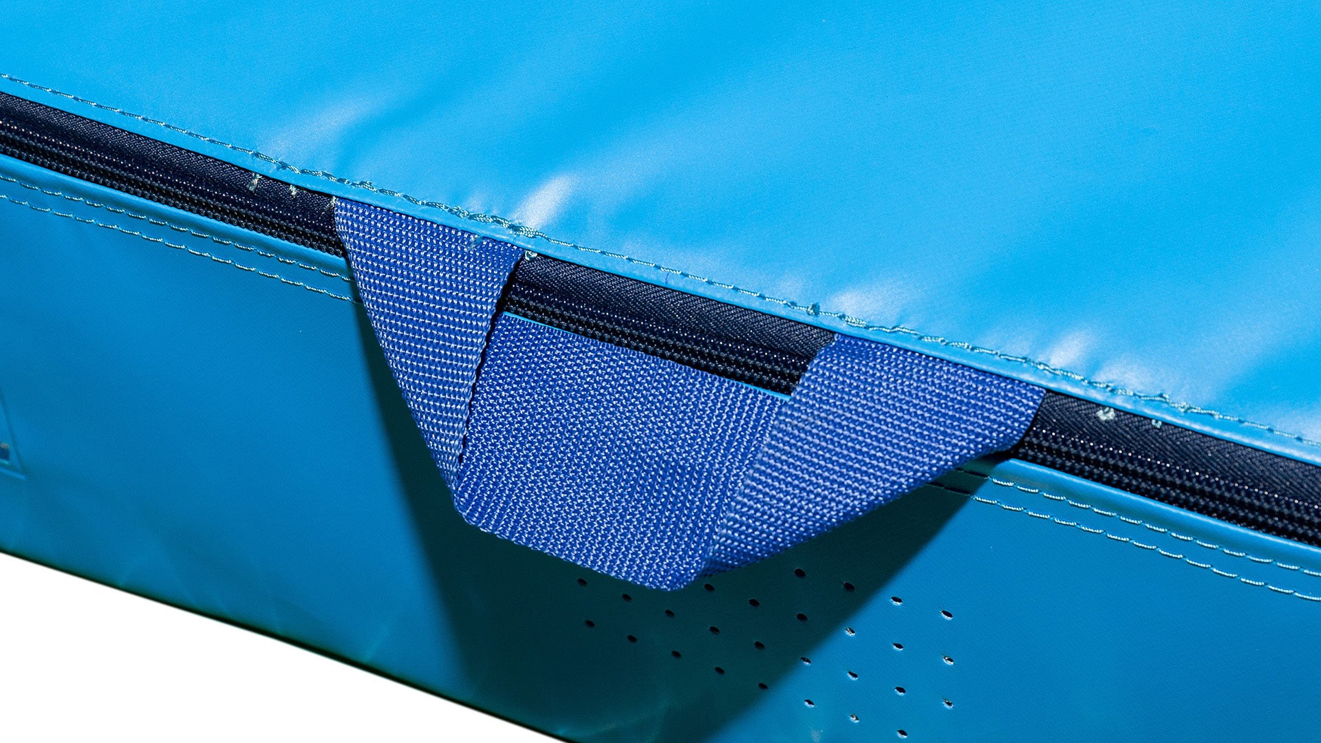Дополнительный мат в основном используется для защиты спортсменов в художественной гимнастике, соревнованиях и тренировках. Покрытие мата изготовлено из экологичного ПВХ-тканого материала, обеспечивающего комфортную и износостойкую поверхность. Противоскользящий ПВХ-материал на нижней стороне увеличивает трение и предотвращает скольжение. Ручки, расположенные на нижней стороне, облегчают перемещение мата. азмеры: 2000 мм (длина) × 2000 мм (ширина) × 100 мм (высота). Материал: покрытие из экологичного ПВХ-тканого материала; внутреннее наполнение — высококачественный поролон. Цвет: светло-голубой (Pantone 2173C). Вес брутто: 16 кг. Количество упаковок: 1. Сертифицирован FIG.