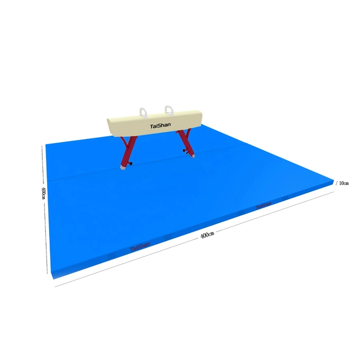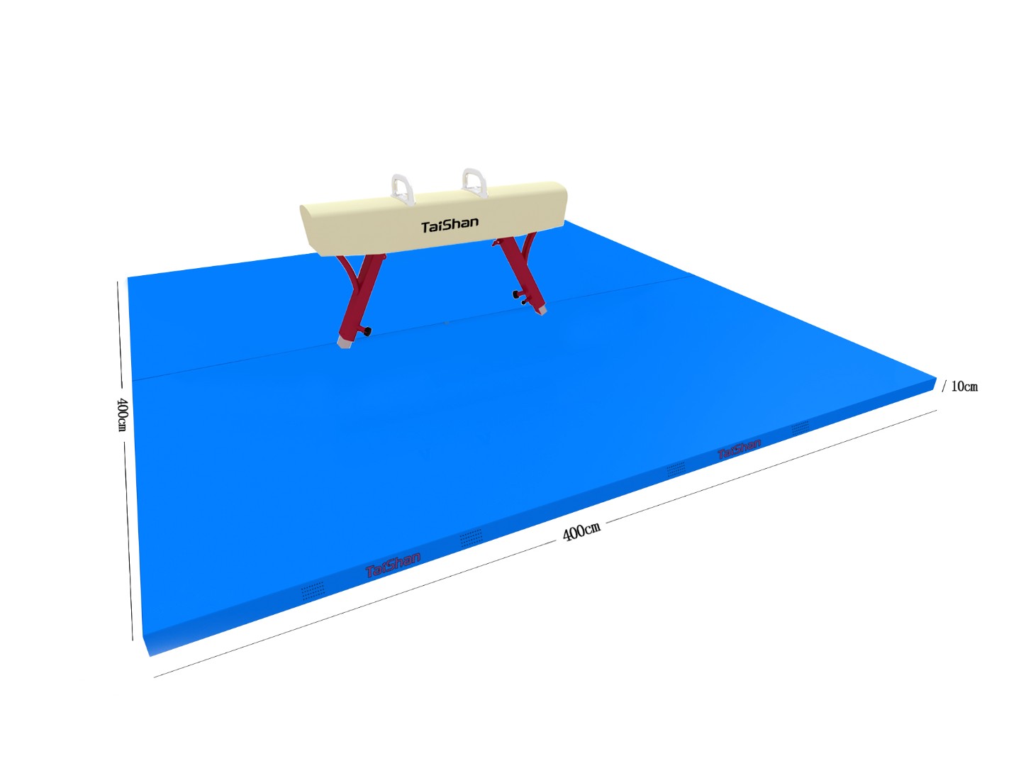 Защитный мат для коня с ручками используется для соревнований и тренировок на коне. Чехол изделия изготовлен из износостойкой ПВХ-ткани. Боковые вентиляционные сетки и воздушные отверстия обеспечивают эффективный выход воздуха. Дизайн с ручкой-ремнём на нижней части облегчает переноску и перемещение защитного мата. Каждая секция мата соедяется с помощью застёжки «крючок-петля» (липучки), что обеспечивает лёгкую сборку/разборку и прочное соединение. Симметричная сэндвич-структура внутреннего наполнителя используется для защиты спортсменов и снижения риска травм. Размеры: длина 4000 мм × ширина 4000 мм × высота 200 мм. Материал: наружный чехол изготовлен из экологичного ПВХ-тканого материала; внутренняя часть состоит из высококачественного поролона и XPE-пены. Цвет: светло-голубой (Pantone 2173C) Сертифицирован FIG. Подходит для коня с ручками FIG модели TQ1004B. Количество упаковок: 2.