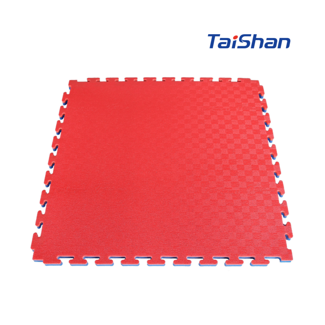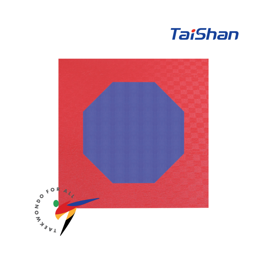 Площадка для тхэквондо представляет собой покрытие общей зоной размером 1200 × 1200 × 2,5 см, состоящей из секций размером 82,8 × 82,8 см. Мат изготовлен из материала XPE устойчив к износу и рассчитан на длительную эксплуатацию в условиях интенсивных нагрузок. Зона соревнований выполнена в виде восьмиугольника диаметром 800 см, соответствующего международным стандартам для проведения соревнований по тхэквондо. Поверхность мата имеет специальное тиснение, разработана с учетом требований к амортизации и сцеплению. Маты скрепляются между собой при помощи зубчатого замка, исключающего смещение секций во время активных действий. Цвет: красно-синий.