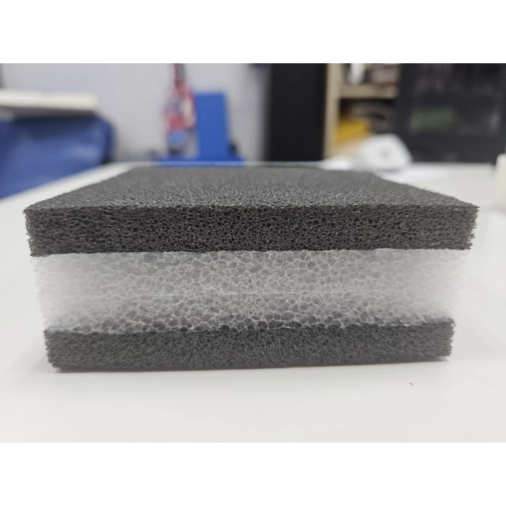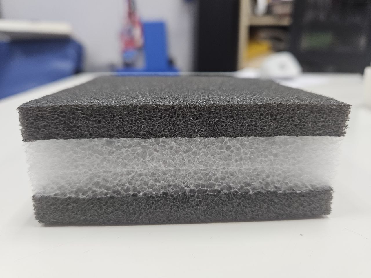 Мат ППЭ/НПЭ — комбинированный мат, состоящий из слоёв химически сшитого пенополиэтилена и газовспененного пенополиэтилена. Мат имеет плотность 160 кг/м³, стандартный размер 1×2 м и толщину 40 мм. Материал не впитывает влагу и сохраняет форму. Соотношение слоёв: 10 мм ППЭ + 20 мм НПЭ + 10 мм ППЭ.