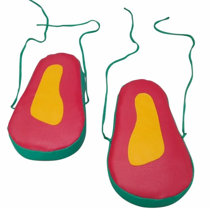 Детские игровые Ходунки Лапки. Ходунки Лапки - отличная игра для детей! Она используется для индивидуальных и коллективных спортивных занятий. Суть игры состоит в том, чтобы быстрее добраться до определенной цели. Ножками ребёнок вставляет на следки, а верёвочки держит в руках. Победителем становится тот, кто доберётся до цели быстрее и при этом ни разу не упадет. Игра развивает координацию движений и ловкость. Модуль изготовлен из тента ярких цветов.