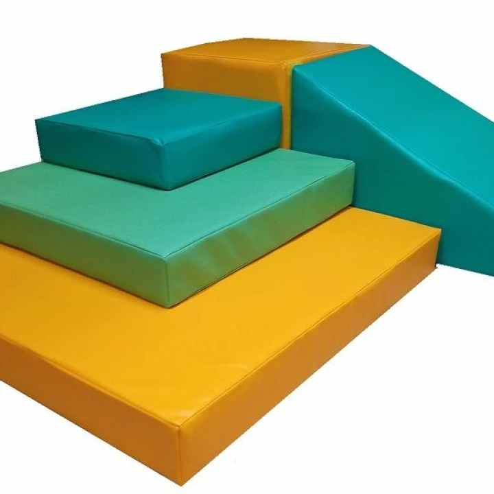 Спортивный комплекс Островок-2. Если вы затрудняетесь в выборе мягких модулей, ООО Дешевле Не Найдешь предлагает воспользоваться готовым набором по выгодной цене. В нем представлены простые детали: горка, куб и три папки мата. Из этих деталей дети смогут строить простые конструкции. Набор послужит основой для создания нескольких вариантов предметно-игровой среды. Маты используют в качестве удобных подушек для игр на полу. Мягкие модули из набора шьются из прочного и устойчивого к загрязнениям тента, в качестве набивки применяется поролон.