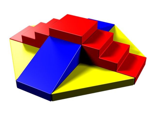 Спортивный комплекс Пирамида состоит из девяти мягких модулей. Он предназначен для игр и конструирования детям 3-6 лет. Если сначала ребятам будет интересно залезать на горку и съезжать с нее, то потом можно предложить им собирать горку самостоятельно.Дети научатся соотносить размеры и назначение фигур, строить ступеньки. При желании из модулей, входящих в набор можно собирать другие объекты предметно-игровой среды, использовать их для выполнения физических упражнений.
