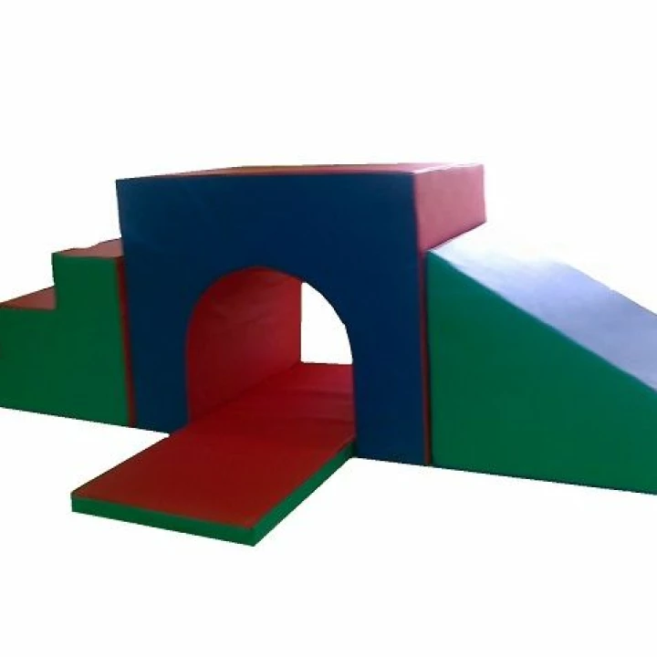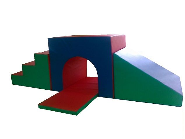 Спортивный набор Куб-ворота. С помощью набора мягких модулей вы создадите замечательный уголок для активного отдыха в группе детского сада или в любом помещении, где требуется на некоторое время занять детей. Они будут с удовольствием залезать по ступеньке на куб и съезжать с горки, подлезать под арку. Дети придумают массу игр с использованием модулей и других игрушек. На мате, который входит в набор, можно с удобством расположиться, чтобы играть, сидя на полу. Модули используют вместе или по отдельности.