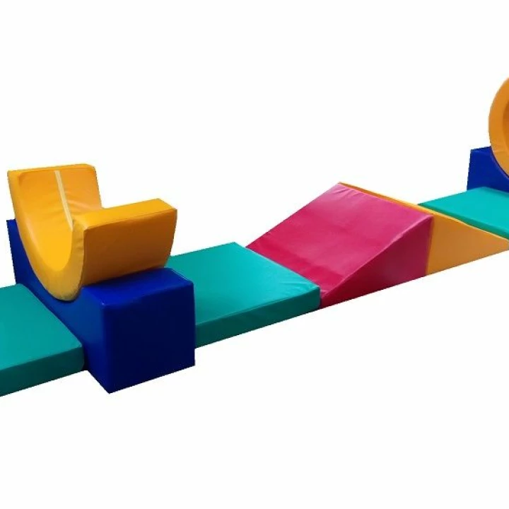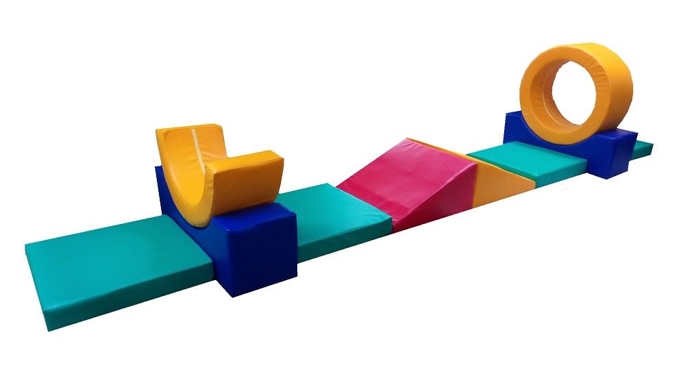 Мягкий спортивный модуль Тропинка. Спортивный набор мягких модулей состоит из поролоновых фигур, обтянутых материалом ярких цветов и имеет для детей привлекательный вид, что позволяет развивать фантазию, творческие и конструкторские способности, а также логическое мышление ребенка во время игр с набором. Мягкий модуль Тропинка от ООО Дешевле Не Найдешь позволяет детям научиться преодолевать препятствия в игровой форме, что благоприятно сказывается на общефизической подготовке малыша. Разнообразие фигур по размерам и небольшая масса позволяет детям самостоятельно передвигать эти модули с 3-х лет. Отсутствие острых, твёрдых углов обеспечивает безопасность малышей при игре. Набор мягких модулей Полоса препятствий для детей выполнен из высококачественного и эластичного плотного поролона, покрытого тентом, который легко поддаётся влажной гигиенической обработке и хорошо выдерживает нагрузку.