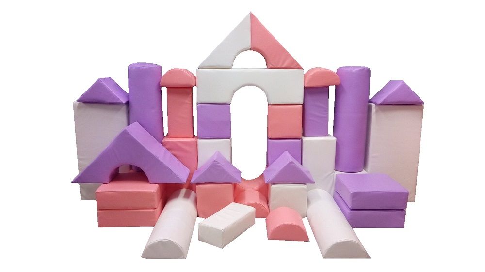 Мягкий модульный Конструктор Городок 34 предмета розовый/сиреневый