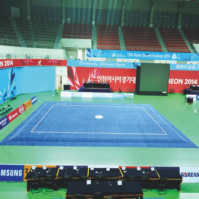 Ковер для Ушу-Таолу соревновательный из высококачественного ковролина. Цвет синий. Габаритные размеры: Длина 16м и Ширина 10м.