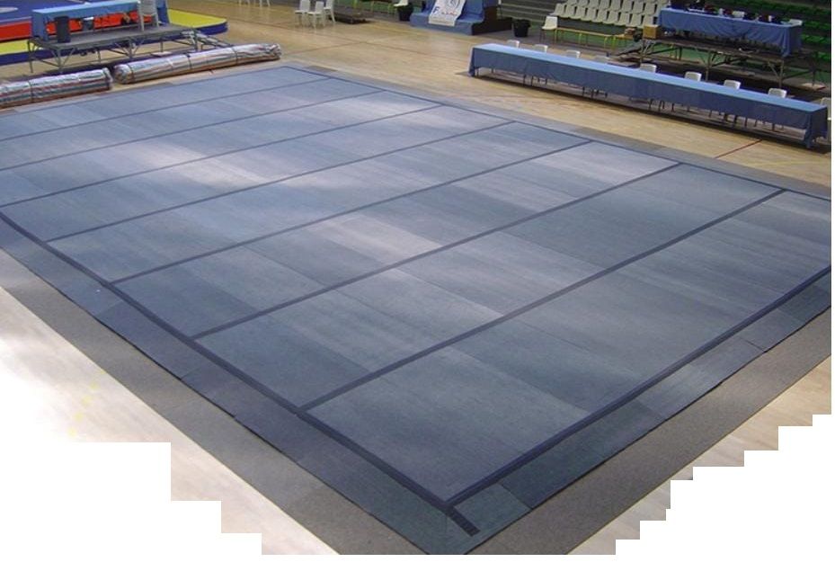 Помост соревновательный для ушу таолу с настилом, соответствует требованиям Федерации Ушу (IWUF).Настил: демпфирующий слой составной конструкции из многослойной клееной фанеры.Фанерный настил на вставках ППЭ высотой 9,5см ,соединеные между собой и обкладочными матами по периметру.