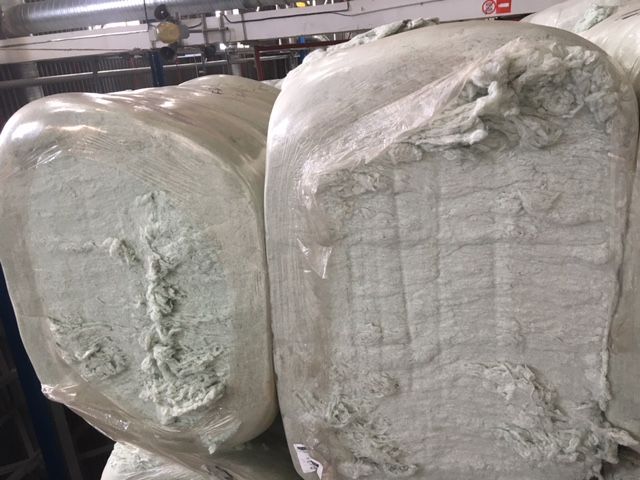 Плотность dtex = 5,2-5,8Удельная разрывная нагрузка cN/dtex = 3,0-3,5Удлинение при разрыве ~ 100%Понятие «длина волокна» или «резка» в нашем случае неприменимо, поскольку это волокно получено в результате разволокнения кромки материала, произведённого по технологии спанбонд (т.е из фильерной мононити).Кромка образуется у нас при выпуске нашего основного продукта - кровельной основы, произведённой из 100% ПЭТ флексы и армированной стеклонитью в продольном направлении.При разволокнении данной кромки стеклонить удаляется, но стеклянная пыль в данном волокне присутствует.Содержание стекла в разволокнёнке может быть, наверное, ~1% +/-. Визуально наличие стекла не видно.Разволокнёнка кипована в тюки весом ~ 250 кг. Норма загрузки в а/фуру по опыту предыдущих отгрузок 16-18 тонн.