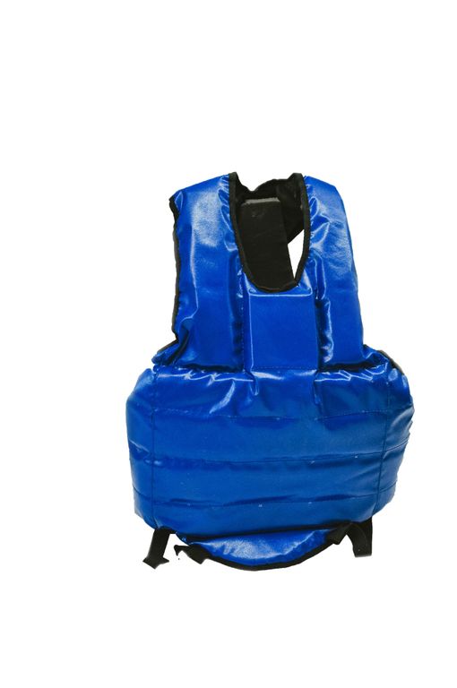 Тент, набивка ППЭ, ППУ. Защитный вкладыш - комбинированный из пенополиэтилена и пенополиуретана. Толщина защитного слоя передней части жилета - 26мм. Толщина защитного слоя позвоночника - 8мм. Наружная поверхность жилета изготовлена из капроновой водоотталкивающей ткани плотностью 240 г/кв.м.