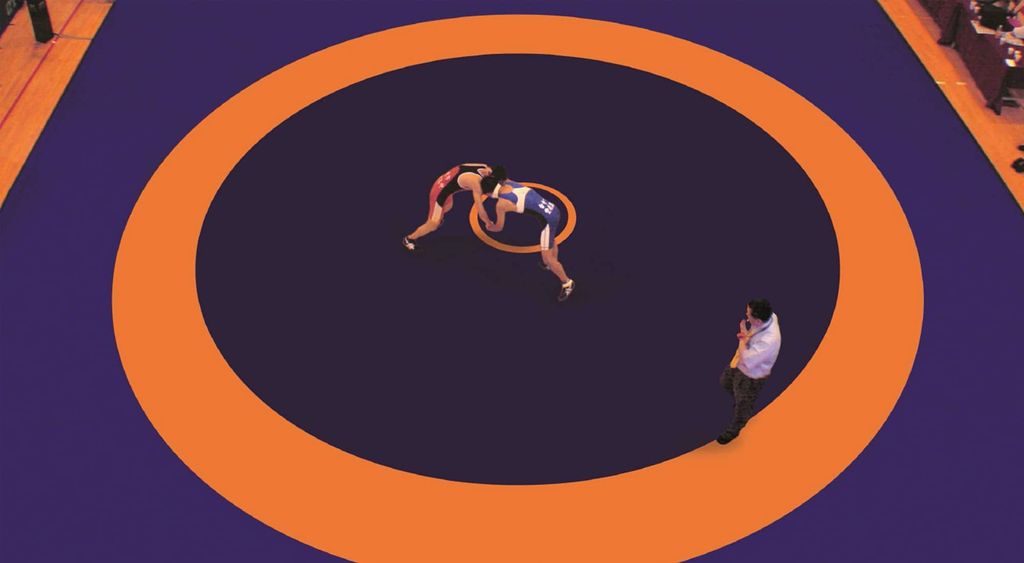 Борцовский ковер предназначен для спортивных залов, в которых проводятся единоборства. Цельное покрытие без стыков защищает спортсменов от травм во время падений. В основании ковра лежат высокопрочные маты из химически сшитого пенополиеэтилена (ППЭ). Структура материала мелкопористая и напоминает закрытые ячейки, поэтому мат может выдерживать большие нагрузки и служить в два раза дольше. Обычный срок службы борцовского ковра при ежедневных интенсивных тренировках достигает 8-10 лет. Размеры мата: 1х2 метра, а толщина: 40-50 мм с плотностью в 180-200 кг/м³. Ковер производится в чехле, основу которого составляет прочный тент ПВХ, плотностью 650г/м².