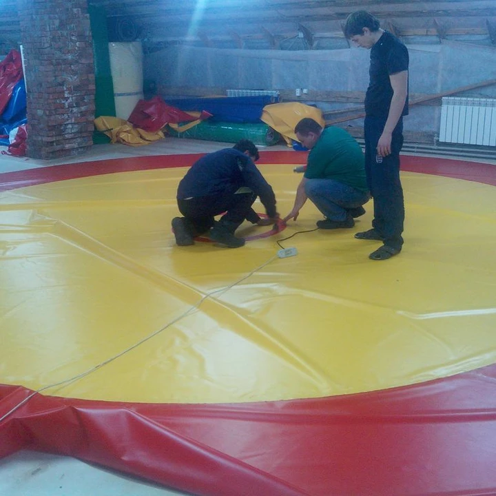 Данные покрытия привезены из Корея-китайское производство.ПВХ 630гр/м2Тип крепления ковра с люверсами