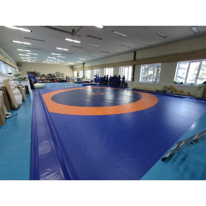 Борцовские покрытия нестандартных размеров из тентовой ткани трёхцветные (С КРУГАМИ под рейку)