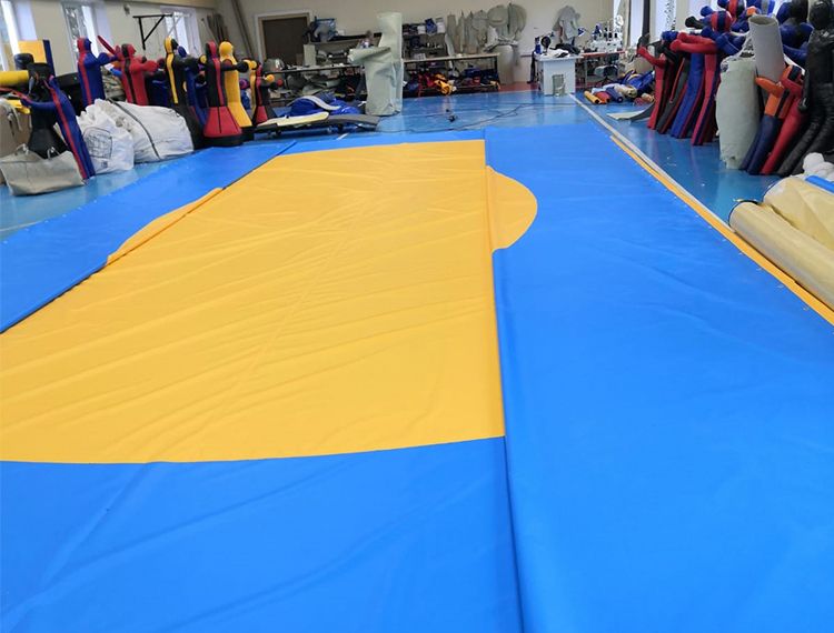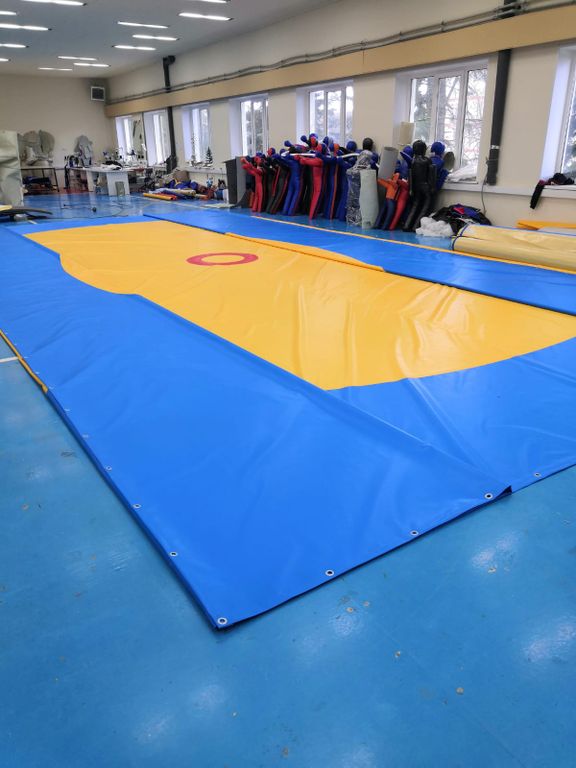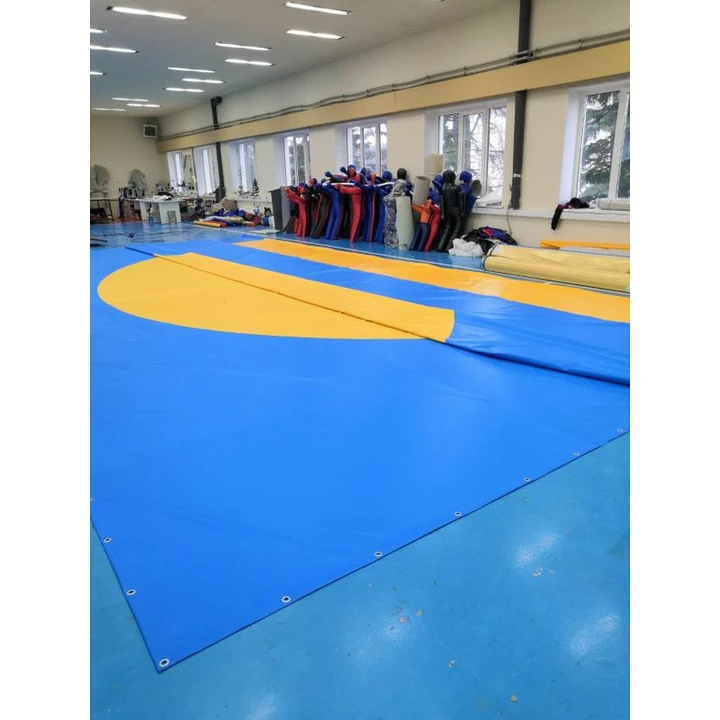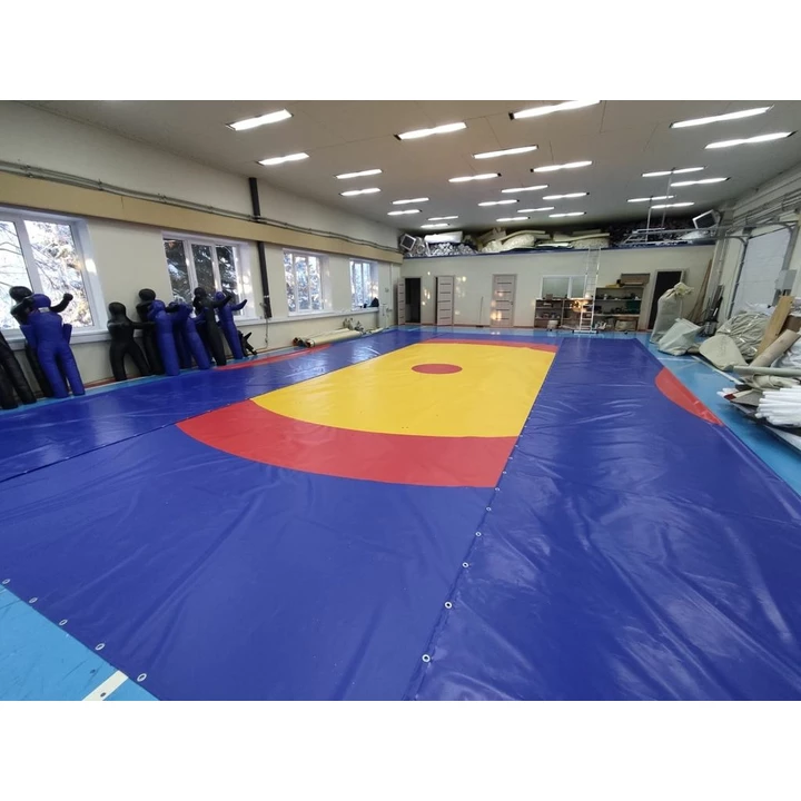 Борцовские покрытия нестандартных размеров из тентовой ткани трёхцветные (С КРУГАМИ под рейку)