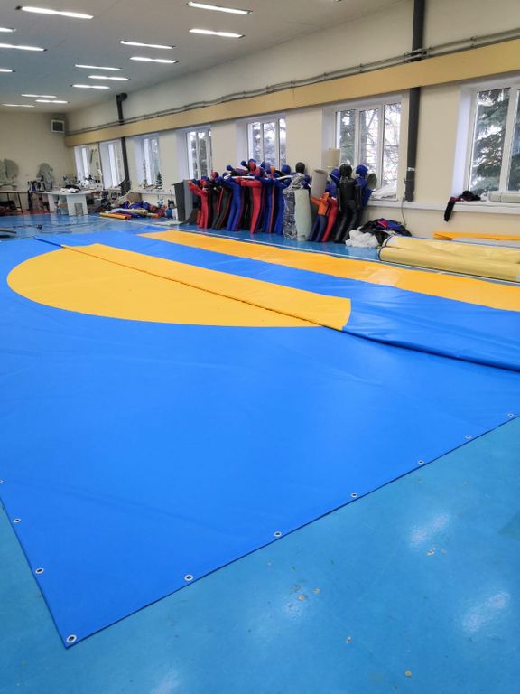 Борцовские покрытия нестандартных размеров из тентовой ткани - цветные (тип крепления карманы)