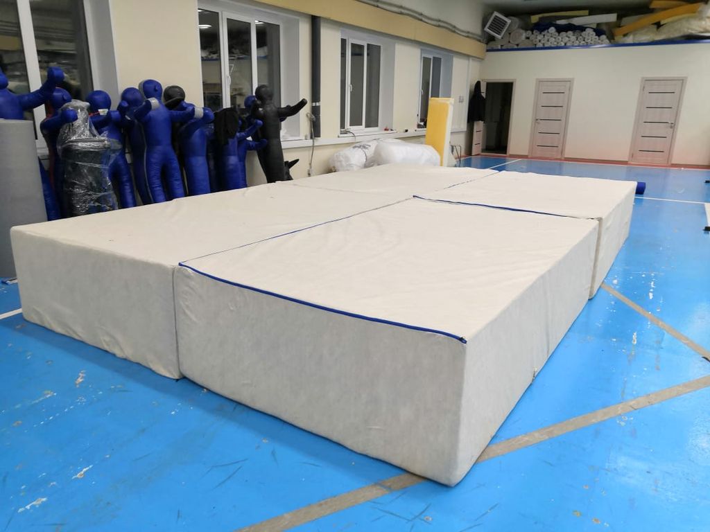 Зона приземления предназначена для проведения спортивных соревнований по легкой атлетике. Зона приземления сосстоит из поролоновых матов, различных размером в (зависимости от общих размеров), каждый из которых обернут тканью. Маты покрыты общим чехлом из хлопчатобумажной спортивной ткань ткани.