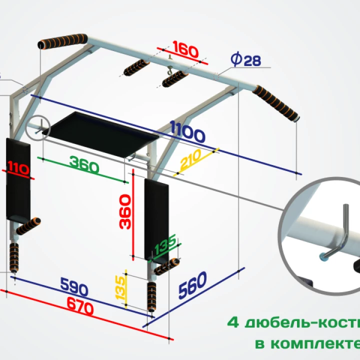 Брусья навесные Школьник 5 (черный, белый, серый, синий)