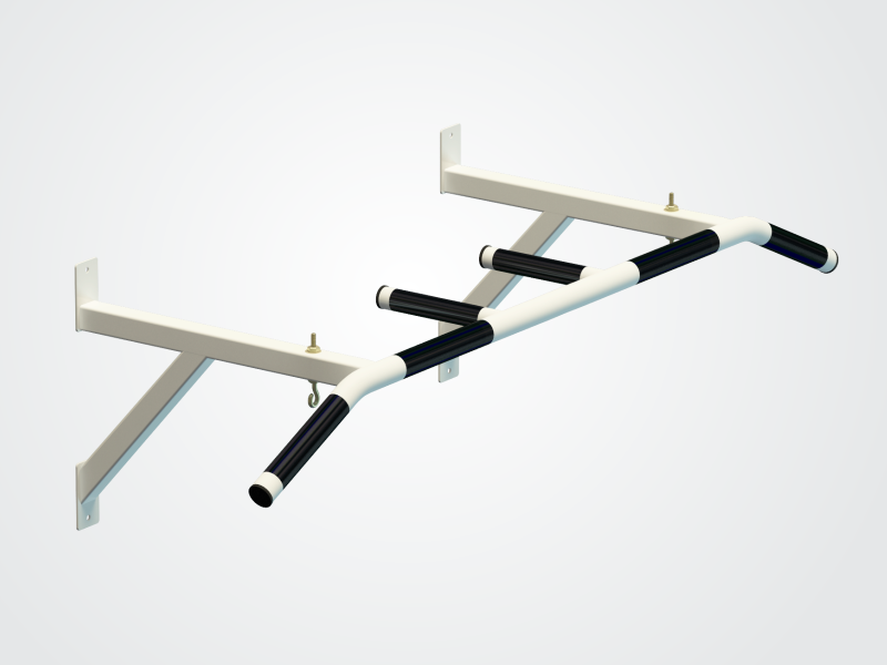 Настенный турник с широким хватом укомплектован крепежом к стене (пластик. дюбели 12х70 и шурупы) + 1 кольцо для подвесного снаряда.